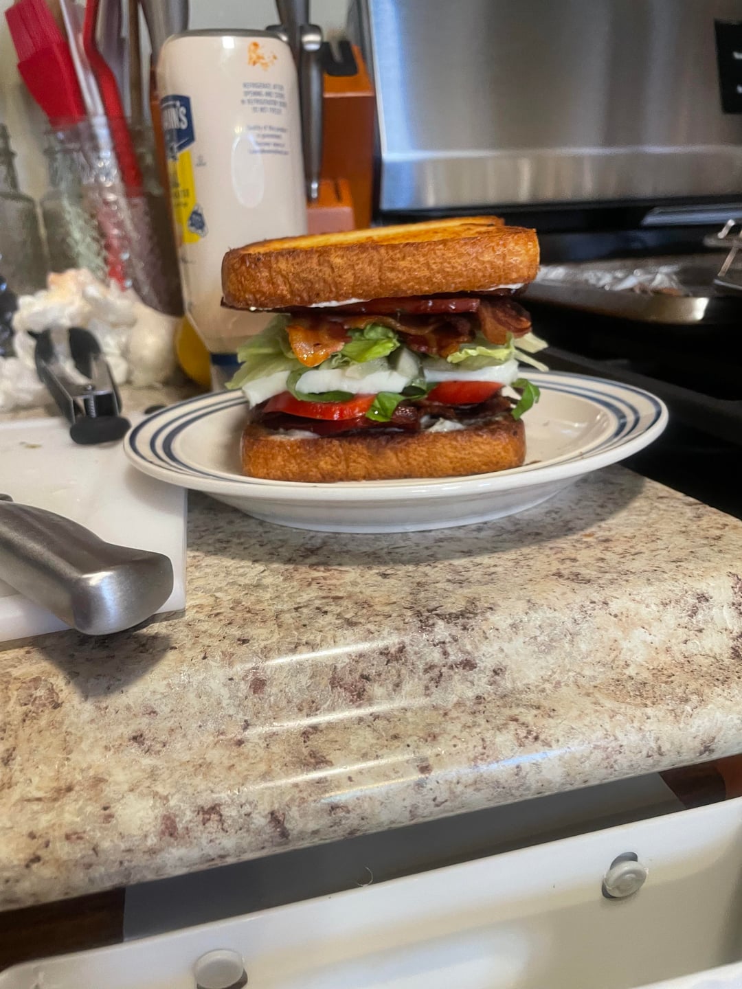 lol you had me until 19/20, I was thinking I KNOW he didn’t waste the rest of those tomato’s and mozzarella! Haha great looking sammie