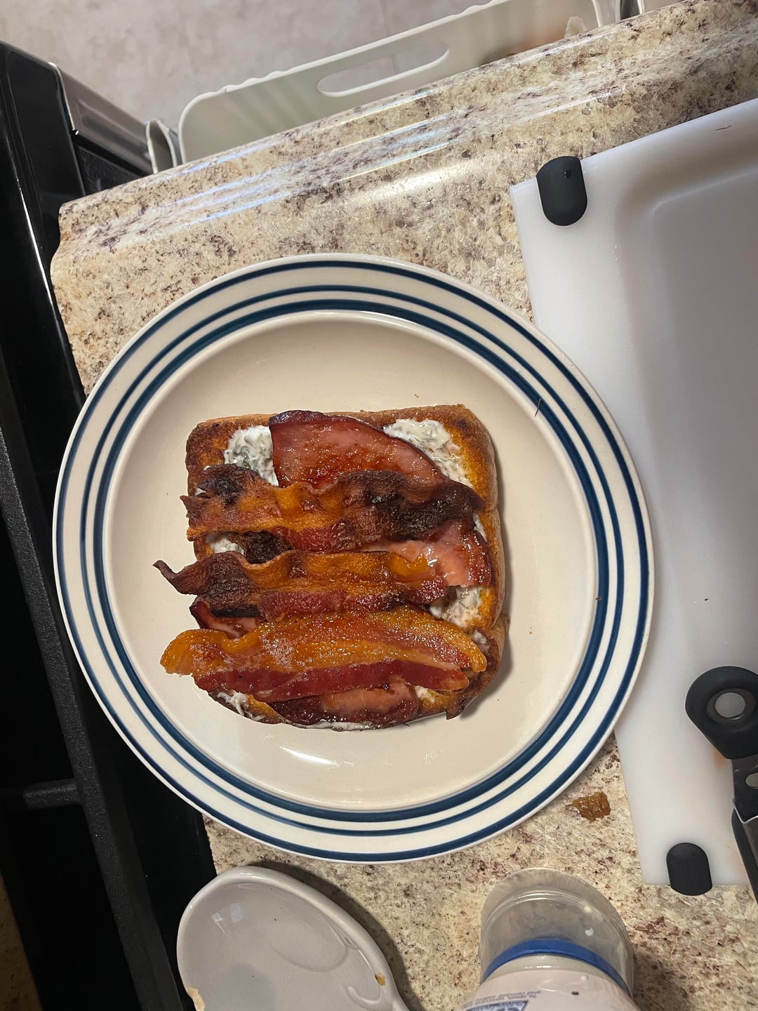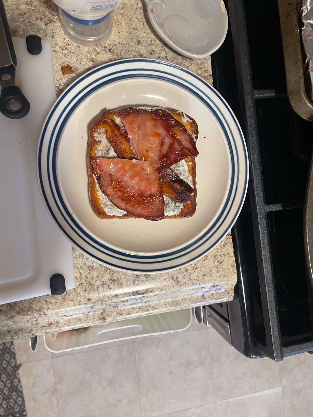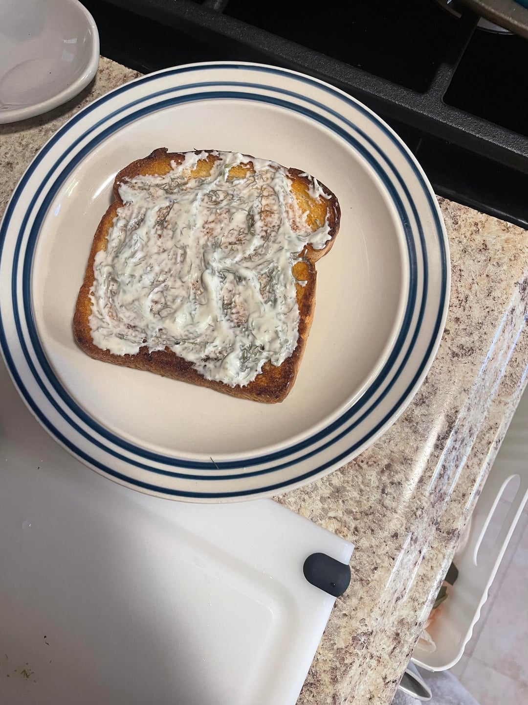 - white bread dipped in the bacon & ham grease & toasted at 400° for 5 mins/side