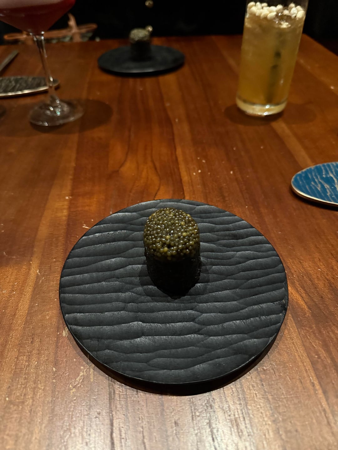 (1) The menu started with their “Caviar Kim.” The bite is quite well known, so I won’t talk too much about it; just that I was surprised at how easy it was to eat. I expected it to fall apart after one bite, but it held its shape and had varied textures.