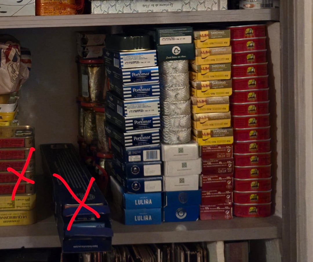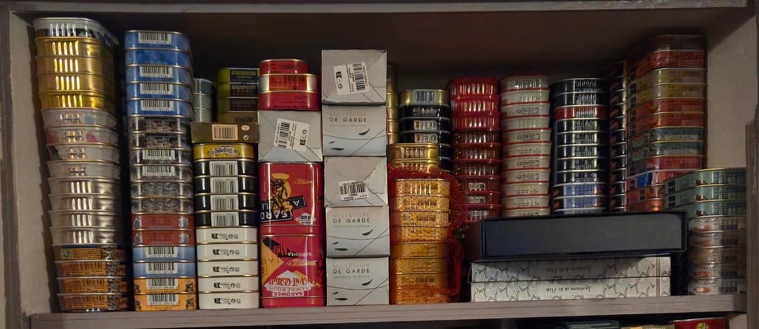 Yes, I turn my sardines every six months, a tedious job which also allows me to check the cans.1st photo: my collection of 700 boxes2nd: the Spanish 3rd: the Portuguese 4th: the Frenchby LividDoughnut6703 2 Comments Lost-Link6216 2 months ago Now post your address so we can help you. DuchessOfCelery 2 months ago Fishfaces like us will do so well for the first two months of whatever apocalypse shows up lol.