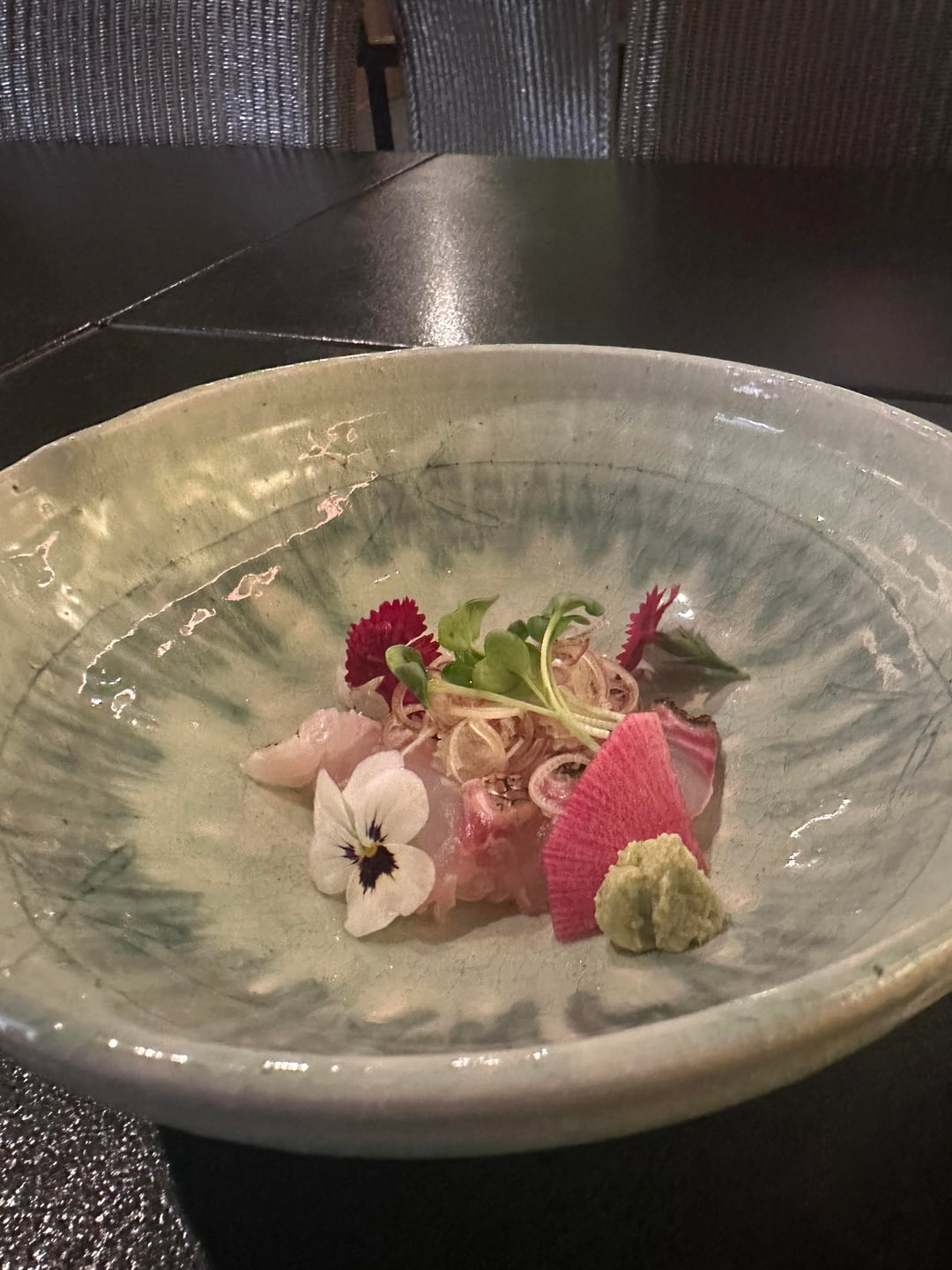 6. Ainame nimono- summed fat greenling/lingcod from Japan with wasabi on top. I don’t really like Japanese preps of (I like plenty of shiromi but ainame is notably bland and fatty which isn’t my favorite), This was fine – very meaty but just not my cup of tea. Simmering liquid is good, still that has that strong ass katsuobushi dashi