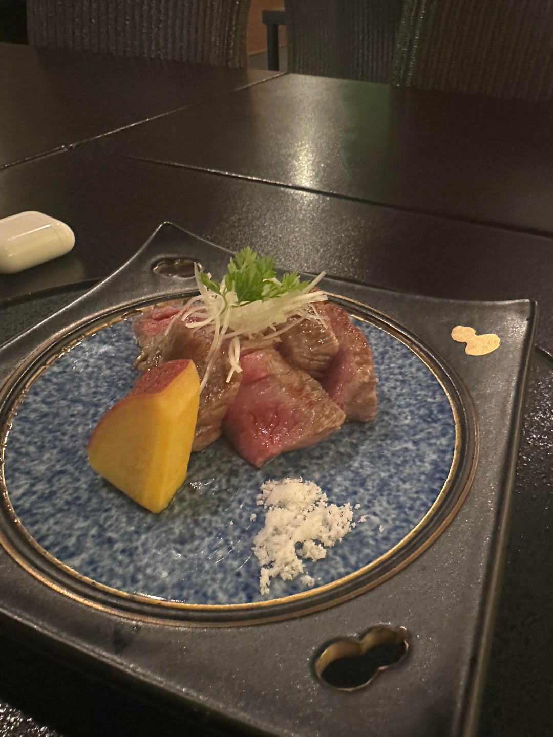 7. A5 Oita w salt and side of sweet potato – very nice, fat has render and edge piece was genuinely delicious