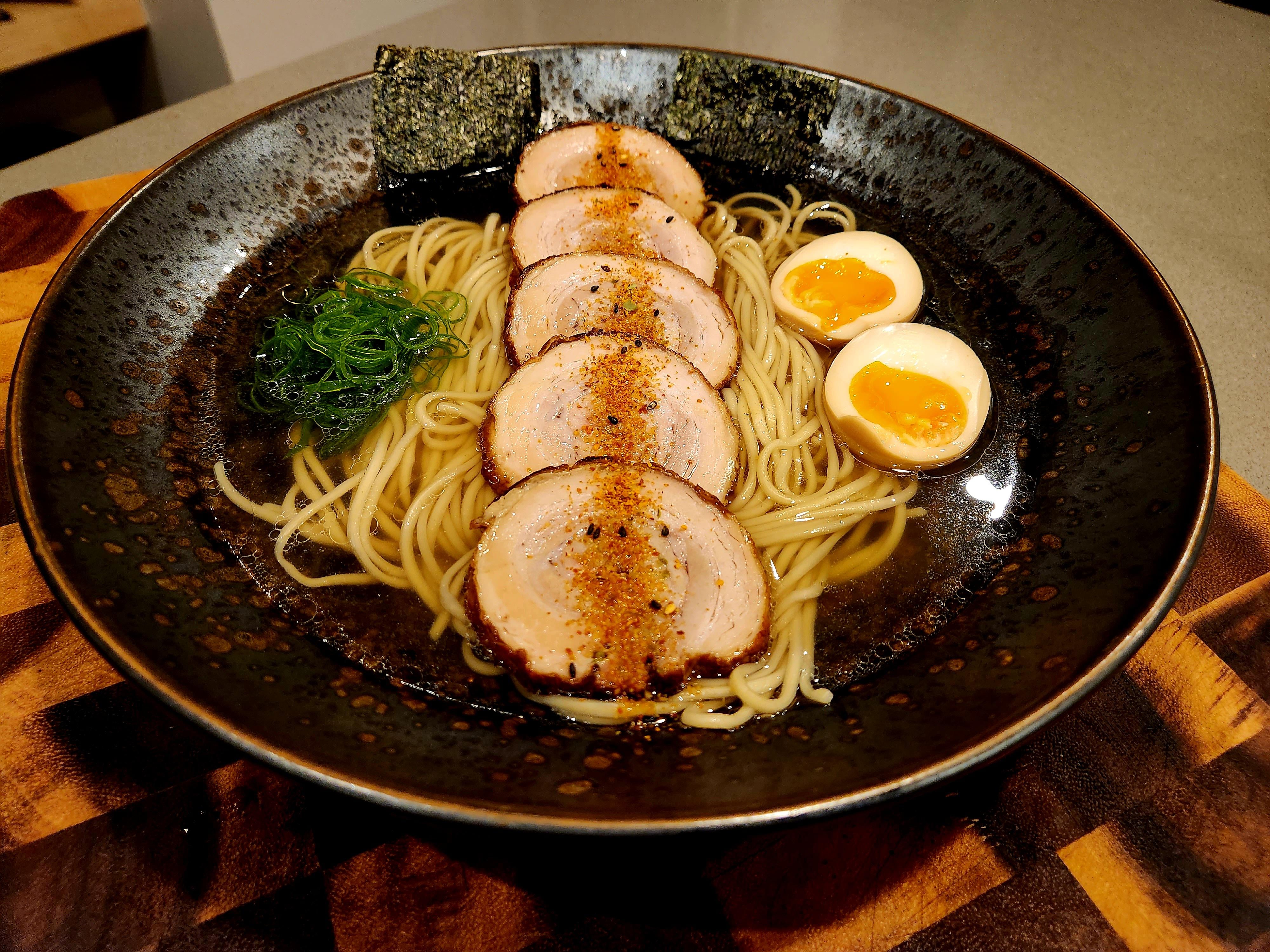 Tonight was a shio ramen with a very dashi like type of tare. Nothing too special about the rest, chashu, Tokyo style noodles and the usual stuff. Worth mentioning that it's the first time ever that I managed sort of a fold which was cool!