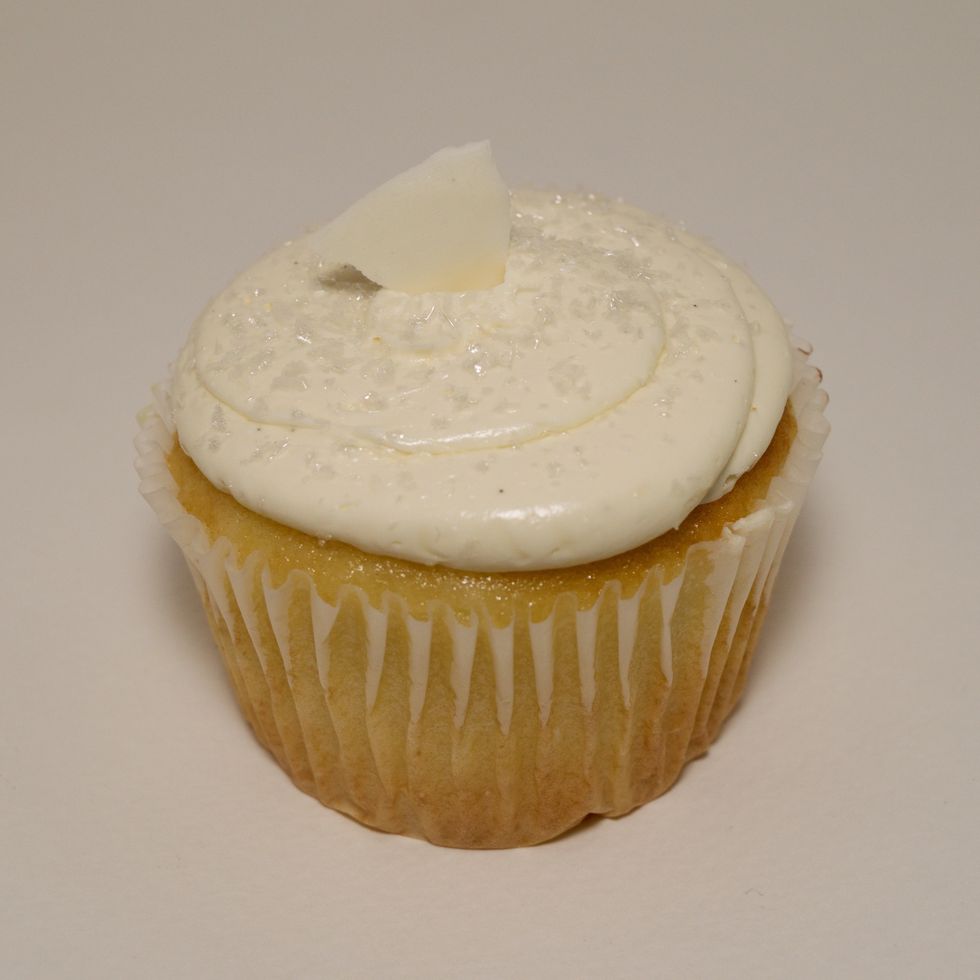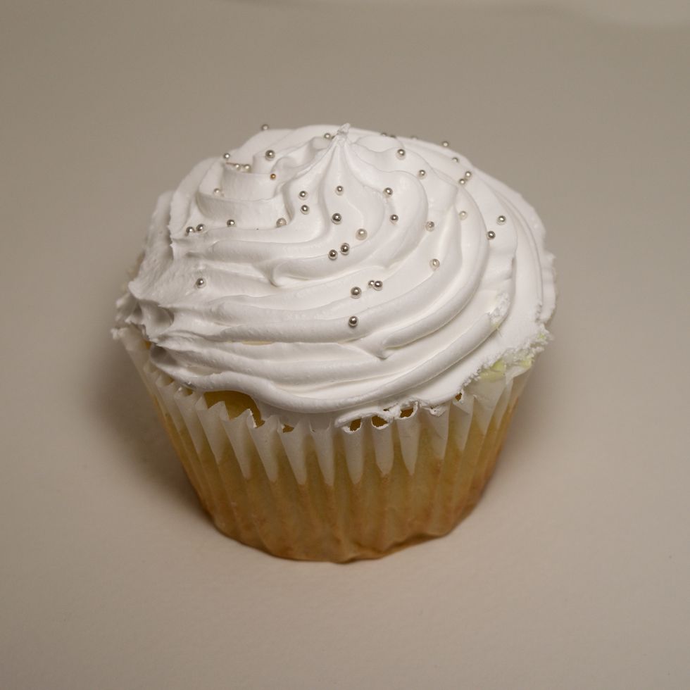 One of the four winning cupcakes from their episode of the Food Network’s “Cupcake Wars.” This vanilla bean cupcake is injected with an amazing four cream mixture, topped with a light, airy whipped cream frosting and sprinkled with beautiful silver dragees. There’s no wonder why this is one of their best sellers!