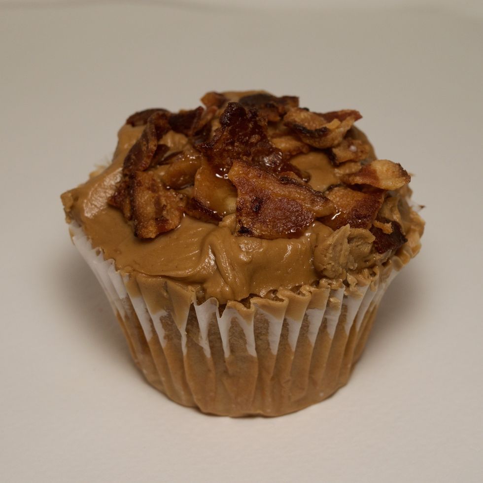 This cupcake tastes like a pancake and bacon breakfast all rolled into one bite! A sweet maple cupcake topped with a fluffy maple buttercream, bacon, and drizzled with maple syrup!