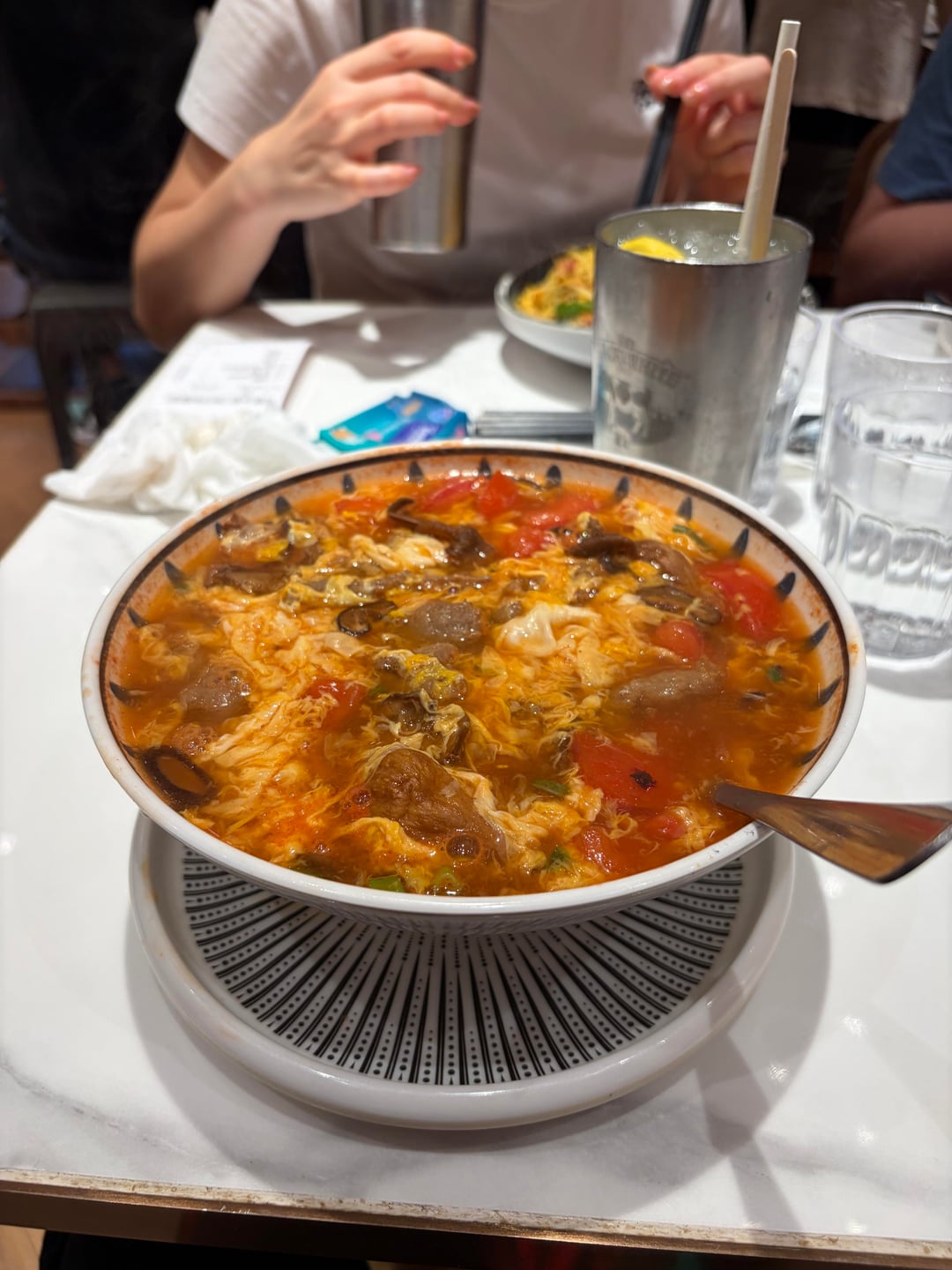 raw beef pho, egg drop tomato soup with mushrooms, beef and rice under, wonton and beef ball noodle soup by Proof_Cellist4717 Dining and Cooking