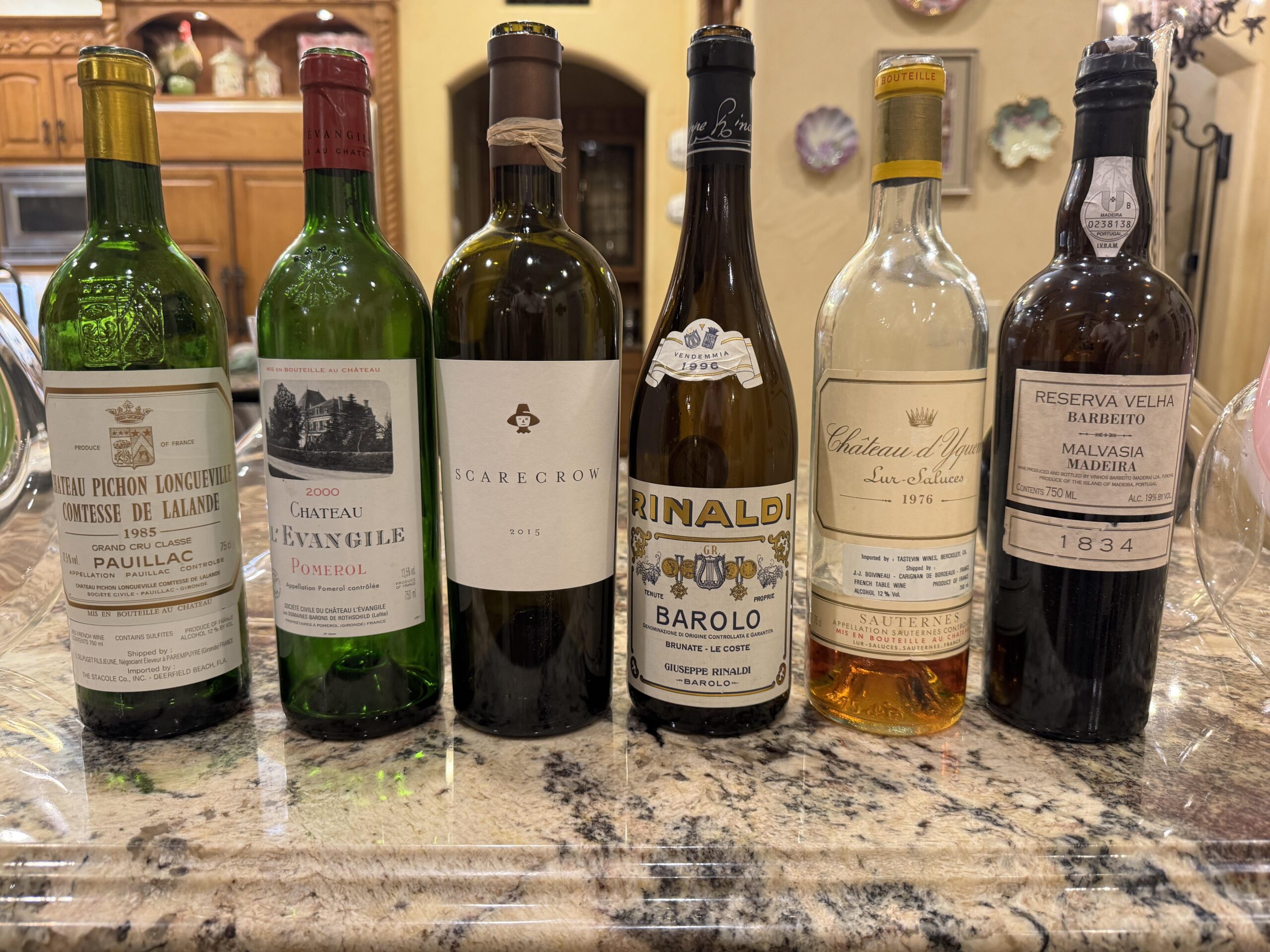 We upgraded the wine list by hosting a business dinner at home last night. The bordeaux and scarecrow all got 90 minutes of air before show time, with the barolo being a pop and pour. The ‘15 Scarecrow got most people started and was surprisingly integrated and very approachable even without food. WOTN for most guests was the ‘85 Pichon Lalande — everyone really enjoyed the tertiary flavors of cedar and tobacco, followed by the ‘00 L’Evangile. Personally, I thought the ‘96 Rinaldi Barolo was a show stopper and it was the first bottle to be emptied. Dessert wines kept the party going, and the 1834 Madeira was a fun contrast to the ‘76 ‘Yquem. The difference in acidity between the two was striking. Wine was paired with beef tenderloin, grilled octopus and feta salad, truffle mac and cheese, roasted broccoli and garlic and panna cotta for dessert. No one missed the usual steakhouse.