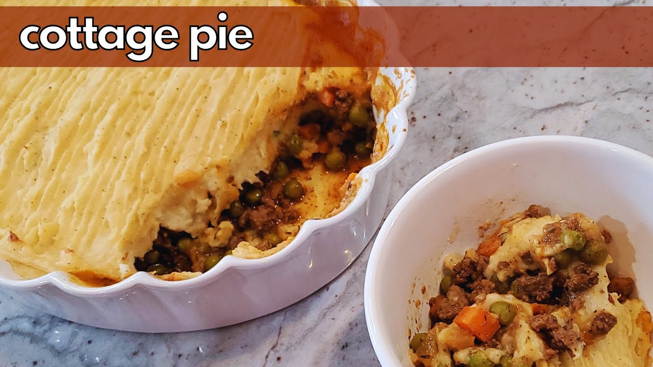 Today we’re making cottage pie. Cottage pie is basically shephardd’s pie, but instead of using lamb, ground beef is used. That’s the only difference between a shephardd’s pie and a cottage pie is the type of meat used. To get started on this family favorite, we’re going to wash, peel, and cube up four large rusted potatoes. The smaller the cubes, the quicker the potatoes will cook. So, keep that in mind. Once they’re all cubed, we’re going to place them in a large pot on the stove covered in water. And we’re going to let them boil until they’re all done. To check if they’re done, grab a fork and pierce the potato. If the fork goes in easy, they’re done. If not, they may still need a few more minutes. Okay, into the pot they go. While we’re at it, let’s finish cutting up the rest of our vegetables. For this cottage pie, we’re going to need one large white onion, diced. Roughly two to three carrots, also diced. Peeling them is optional. I couldn’t care less, so I didn’t bother peeling mine. Also, to note, you can find a list of ingredients and directions posted down below in the video’s description box for your convenience. The recipe also calls for two cloves of garlic. I’m a big fan of garlic, so I’m going to sneak in a few more cloves. With our vegetables now chopped, we’re going to take them over to the stove. And while we’re there, check on the potatoes. Well, these look ready, but just to be sure, I’m going to grab a fork to see if they really are fork tender. Yes, they are. Carefully take your pot of potatoes over to the sink and drain off the water. Okay, now to make our mashed potatoes rich and creamy, we’re going to add in a few ingredients. In goes 2 tablespoons of cream cheese, 1/4 cup of butter, half a cup of shredded cheese. I’m using a fiesta blend here, but straight up just cheddar cheese works too. Half a cup of milk, a splash of heavy cream, 1 teaspoon of salt. I’m using pink Himalayan salt, but regular salt is totally fine, too. And lastly, 1 teaspoon of black pepper. Grab your potato masher and mash everything together. And now would be the perfect time to taste test your mashed potatoes. If you think they need more of anything, go ahead and add that in. More salt or more pepper, you be the judge. I do believe I ended up adding in the rest of my shredded cheese. There wasn’t much left in the bag anyway, so might as well. All right, this looks perfect. Let’s set this off to the side while we work on the rest of our dish. To a large pan, we need one pound of ground beef or lamb. I also added in a small pouch of salted butter. That’s not required. That’s just me wanting to cook my ground beef in a little bit of butter. We’re going to let this cook over mediumigh heat until it’s no longer pink. It’s been a few minutes and as you can see, we’ve got some fat to drain off. So, let’s go ahead and do that. With our pan now empty, our ground beef is sitting on the counter over there. To the pan, we need two tablespoons of butter. I started out with one tablespoon and added in the second one later. In goes our diced carrots. These are going to take a little bit longer to cook than everything else, so they need a little bit of a head start. This looks good. Next, toss in the diced onions. Same thing, the onions are going to take a little bit longer to cook than the garlic, so we’re going to hold off on adding in the garlic. In the meantime, we’re going to toss in our herbs. We need 1 teaspoon of dried thyme, 1 teaspoon of dried rosemary, 1 teaspoon of salt and pepper. As a side note, you probably just noticed that I doubled the herbs in the pan. This is a personal preference. I really, really like the flavors in this dish. So, when I make this recipe, I always double the herbs for that punch of flavor. It’s definitely a lot stronger, but for this dish, that’s just how my family likes it. If this is your first time making this dish, I would highly suggest sticking to the recommended amounts. You can always change it up later and add in more next time. All right, we’re going to mix this together until everything is nice and coated. Then, we’re going to add in our garlic and let that cook for a few minutes, about 2 to 3 minutes. Next, we need 2 Tbsp of tomato paste, 1 tbsp of worst sauce. Mix that up and add in the drained ground beef. Give everything a quick mix. Next, we need one cup of beef broth. We’re going to turn down the heat and let this simmer for about a minute or two. Lastly, we need one cup of frozen peas. If you’re like me and you’re a big fan of peas, we’re just going to look the other way as we dump the whole bag of peas in. Whoopsies. In my opinion, you can’t have too many peas. It’s just good stuff. Why short change yourself, you know? Let this cook for about 5 minutes and then it’s time to assemble our comfort dish. I’ll tell you one thing, anytime I make this dish, my entire house smells amazing and I just love that. To assemble our cottage pie, we need a 9 by13in baking dish. Today, we’ll be using this pretty one that’s normally reserved for holiday cooking, but for you, we shall use it today. Dump in all of our meat filling, spreading it out evenly. Next goes our mashed potatoes. We’re going to top the meat with our delicious mashed potatoes. Another thing I love about this dish is while it’s in the oven, the liquid from below is going to end up bubbling up the sides and spilling out onto the edges of the mashed potatoes. And of course, the mashed potatoes are just going to soak up that incredible flavor. This part is optional, but I like to take a fork and create these little lines for a crispy top. And this, of course, is totally optional. All right, into a preheated oven at 400° for 20 to 25 minutes. It’s been 25 minutes, and just look at those edges. See how the juices bubbled up? It looks so good. Okay, here’s the hard part. Letting your dish rest for