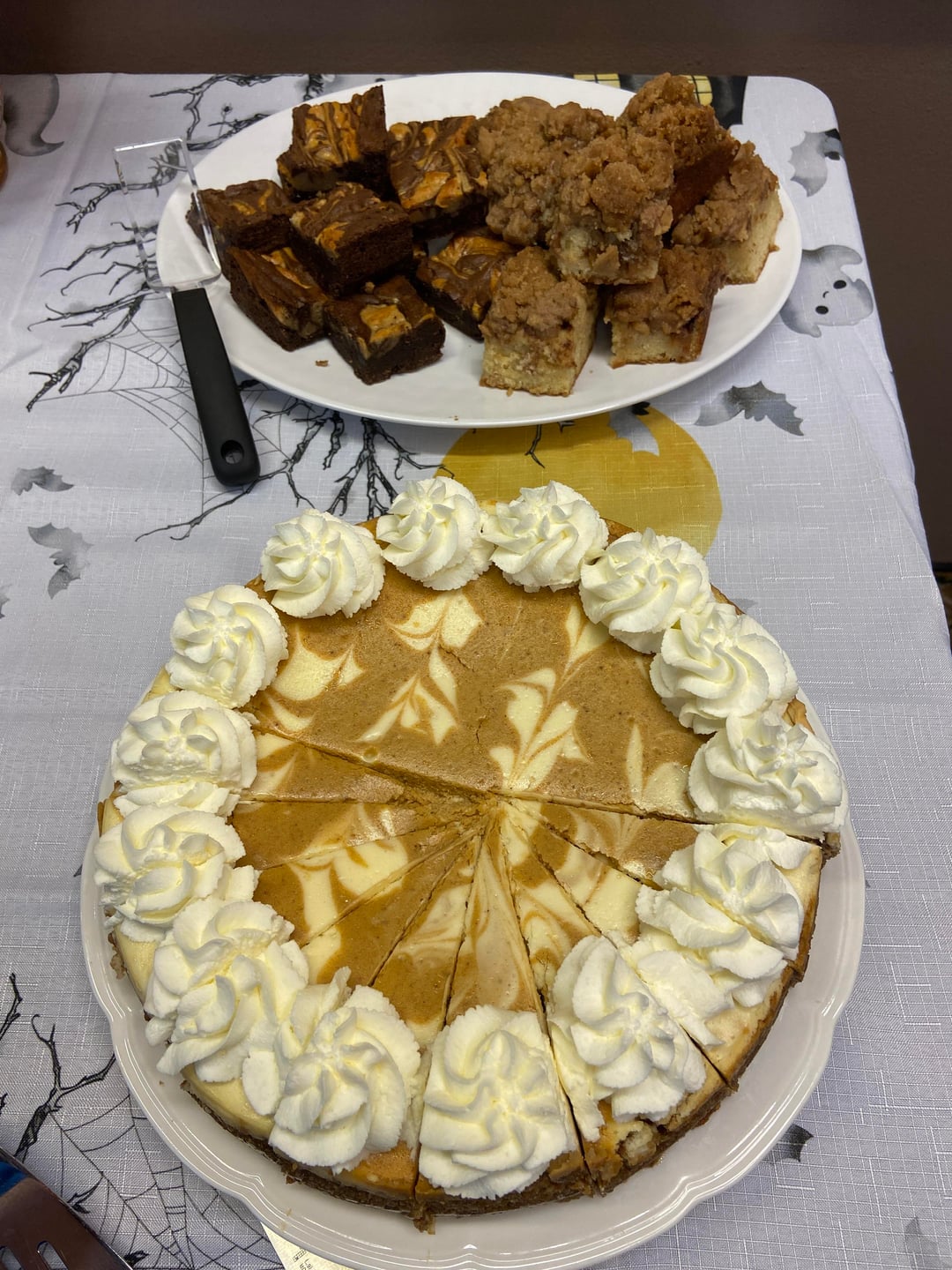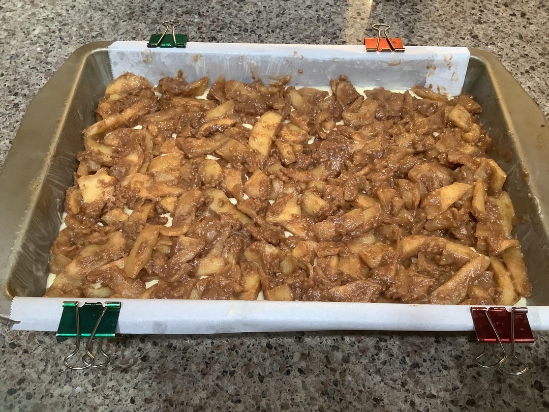 That cheesecake gave me major problems. In the end it was delicious and folks really enjoyed it. I also served peanut butter marbled brownies and apple crumb cake leftover from a social committee event Friday night. I have to say that the feedback I have gotten over my apple crumb cake has been amazing. So I will include that recipe as well. Providing that recipe on the Ask Baking sub resulted in my being permanently banned from that group. To that I say “🤬 them.”