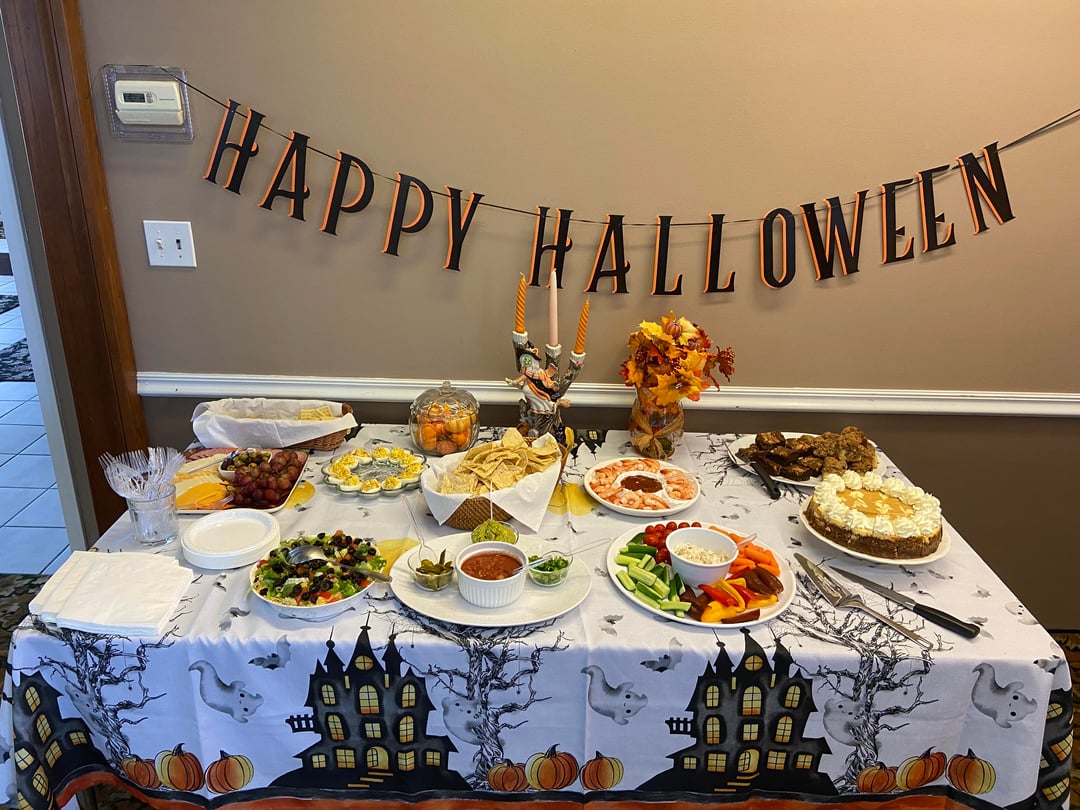 The cheesecake turned out beautiful! Love the Halloween spread too.
