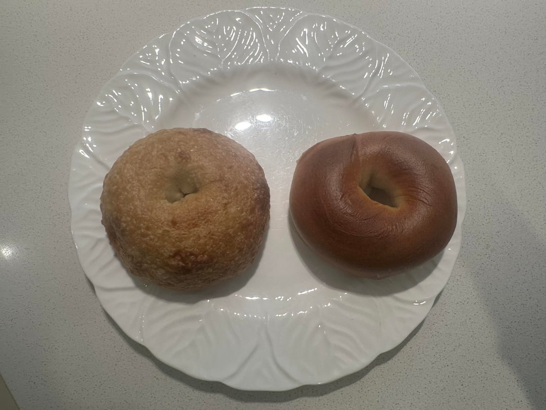 - The NYC bagel travelled in my luggage on a 7 hour transatlantic flight and also spent a day being refrigerated for freshness so not as fresh as bagels should be – obviously bagels need to be eaten there and then (or at least within 24 hours).