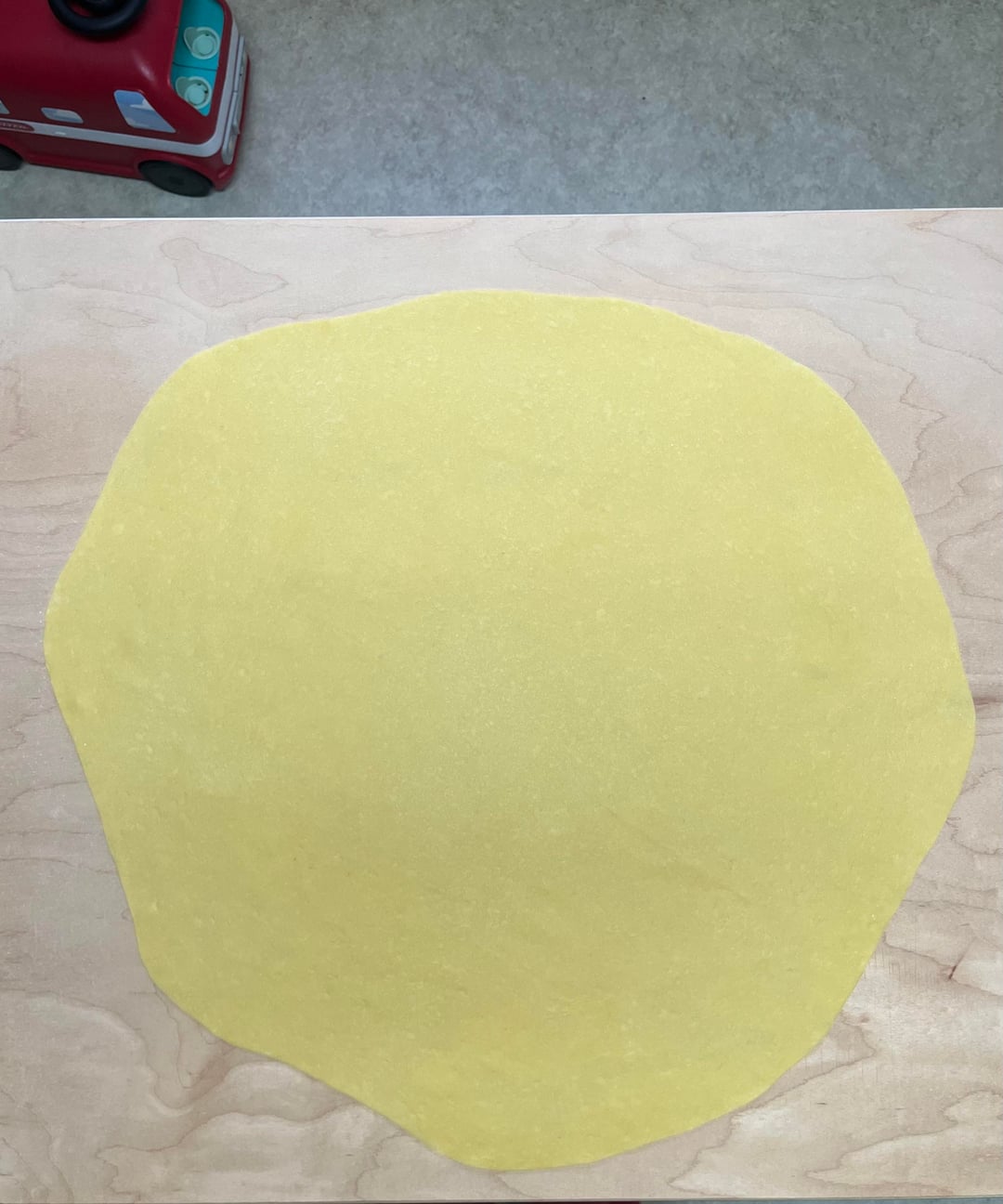 Dough is 00 flour, whole egg, egg yolks, and salt