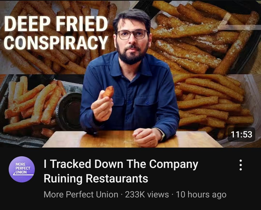 I watched 30 seconds of this earlier today. The dude’s delivery and overall video sucks ass. At least in the first 30 seconds he does drop the name and basically say Sysco is sending shitty food nationwide because they undercut everyone until they can just buy everyone out