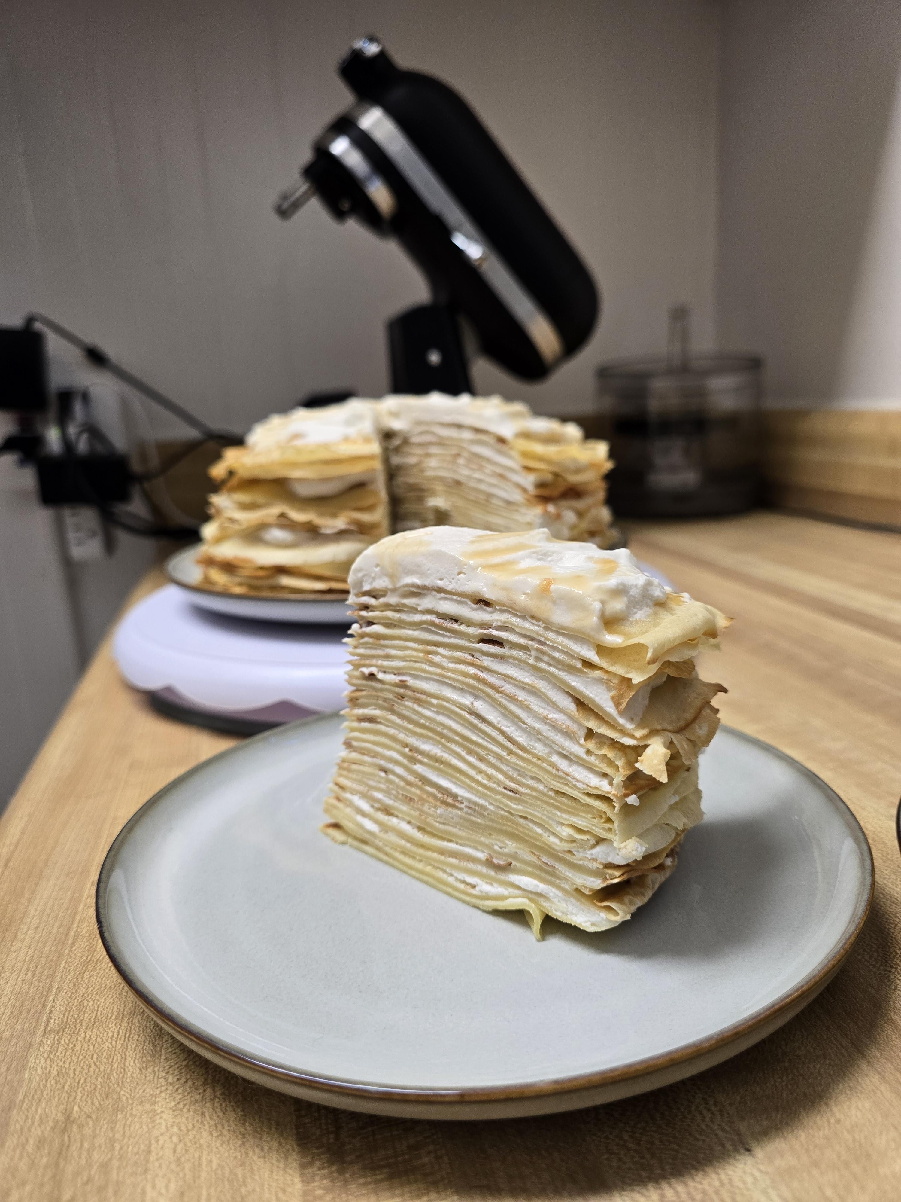 My wife made me a 25 layer Vanilla Maple Crepe Cake for my birthday!