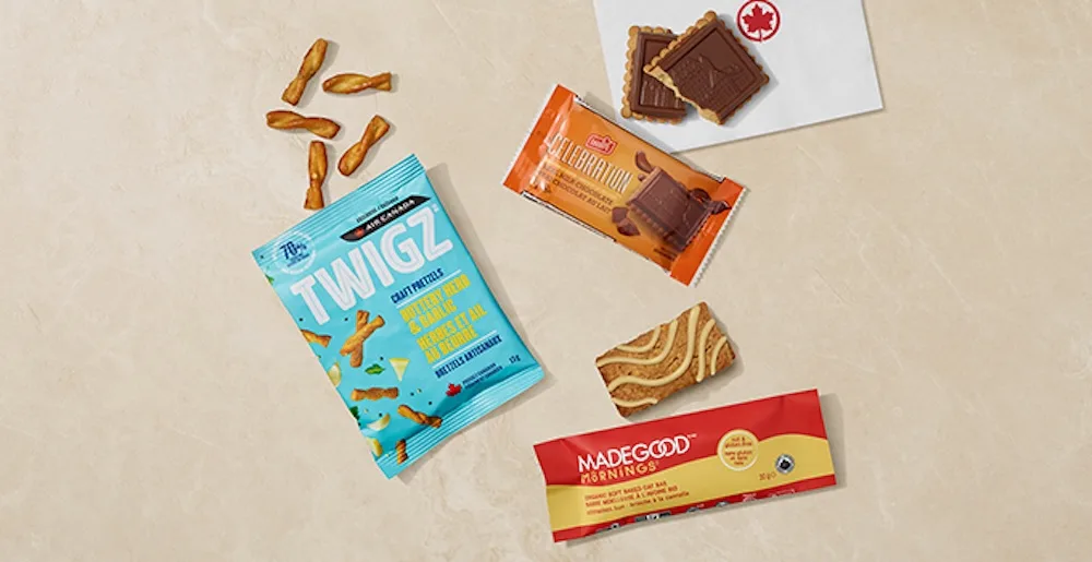 Morning flights (before 10 a.m.): A favourite in homes across Canada, MadeGood Mornings Cinnamon Bun Soft Baked Oat Bars join the line-up of complimentary snacks onboard, alongside Canadian favourites TWIGZ Craft Pretzels and Leclerc’s Celebration Cookies.