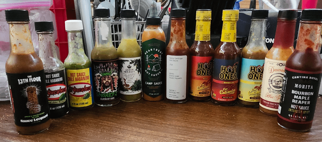 These are mostly what I've collected from my Heatonist.com subscription; I love the Camp Sauce and the jalapeño-tequila-lime sauce in particular! I also buy the Los Calientes sauces at my local store when I can, I think they compliment the first 3 well