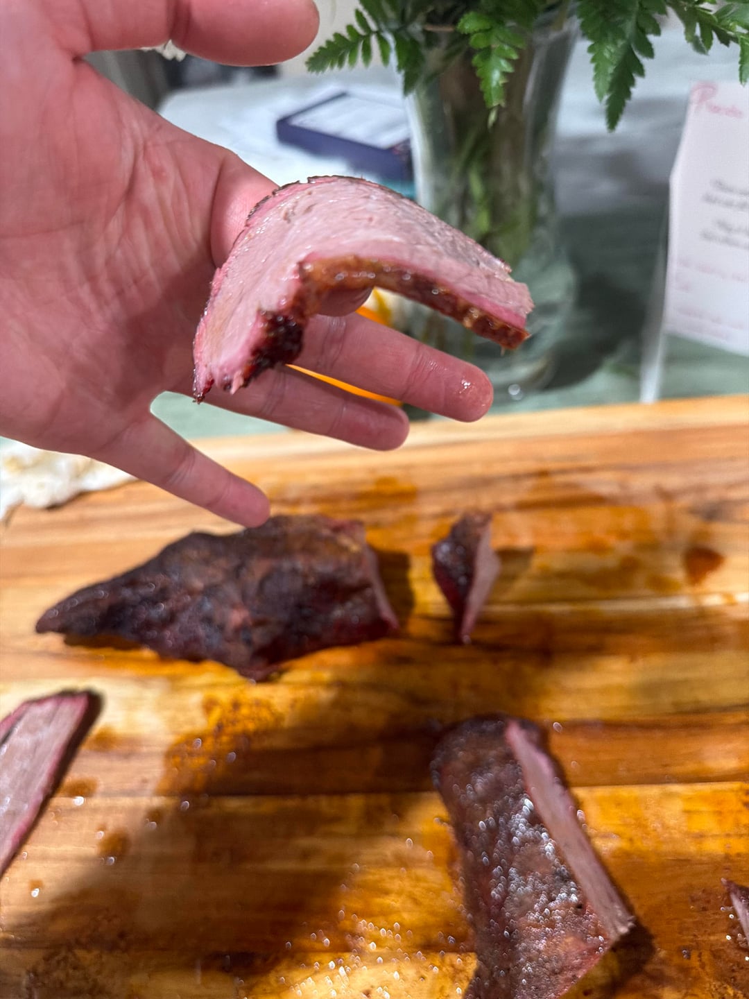 Didn’t like : kinda bland in terms of smoke and flavor. i thought I dumped seasoning everywhere on it and let it sit for about 45 mins. I did two binders, one mustard and one olive oil on the other. I think I liked the mustard one more it had more flavor for sure. Also even though the smoke ring was there, I didn’t really get any “smoke” flavor to be honest. Really only at the tips