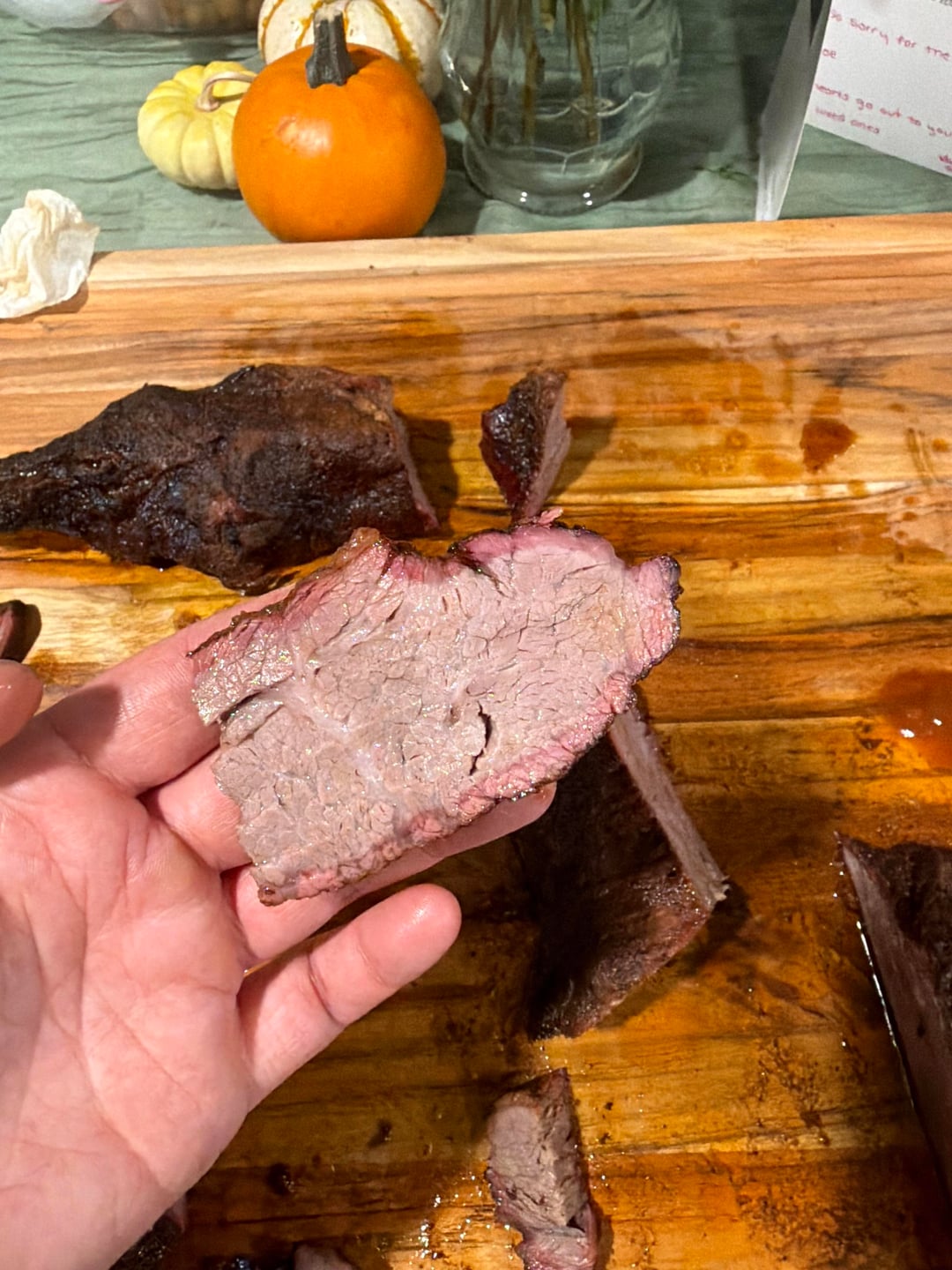 Like: super juicy, dripping everywhere it was nice. Smoke ring looked pretty good to me. Fell apart decent with 1/4” slices against the grain.