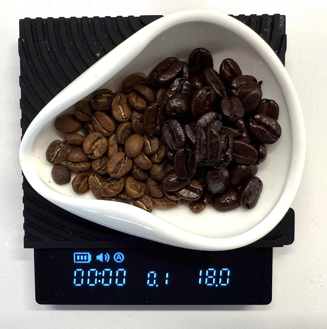 The Graffeo is the least dense coffee I've ever brewed. An 18g dose requires a 20g basket to fit properly. The beans have an oily sheen, but fortunately aren't sticky. I was worried they would gunk up my Timemore grinders, but so far that hasn't been a problem.