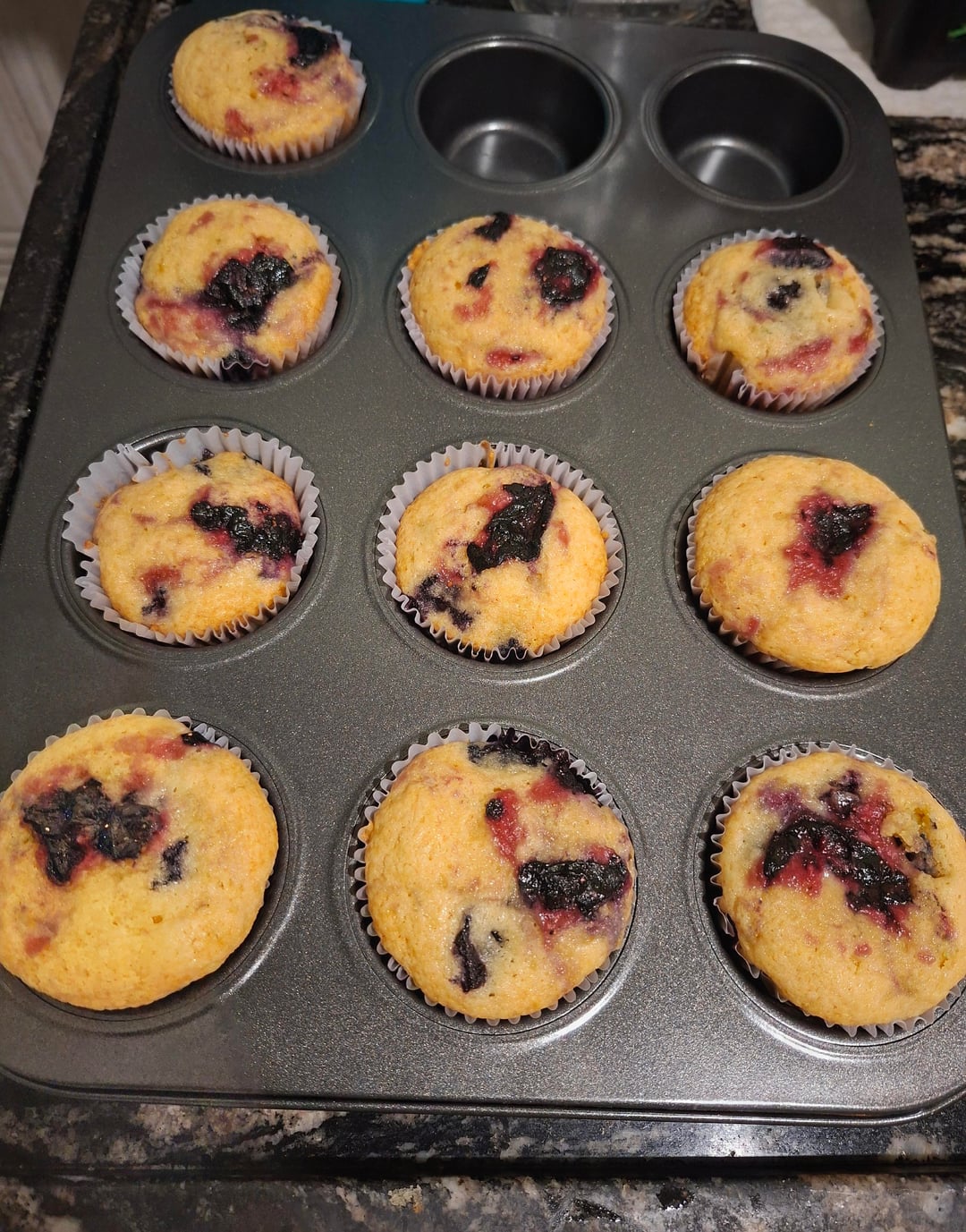 Mine don’t always come out pretty because I stuff way too many blueberries in them.
