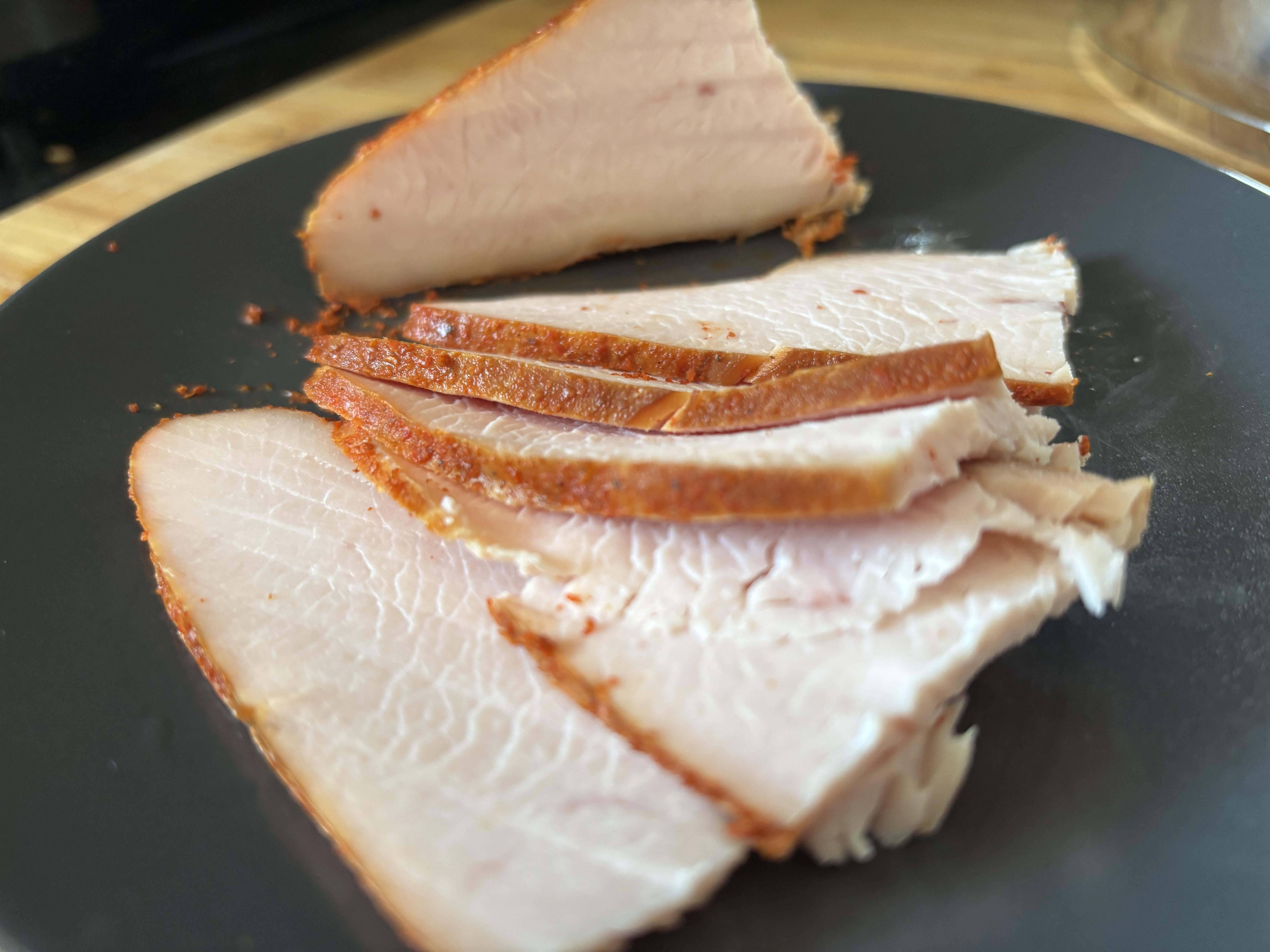 Brined for 7 days. Smoked for 4 hours and SV 58c for 4 hours.