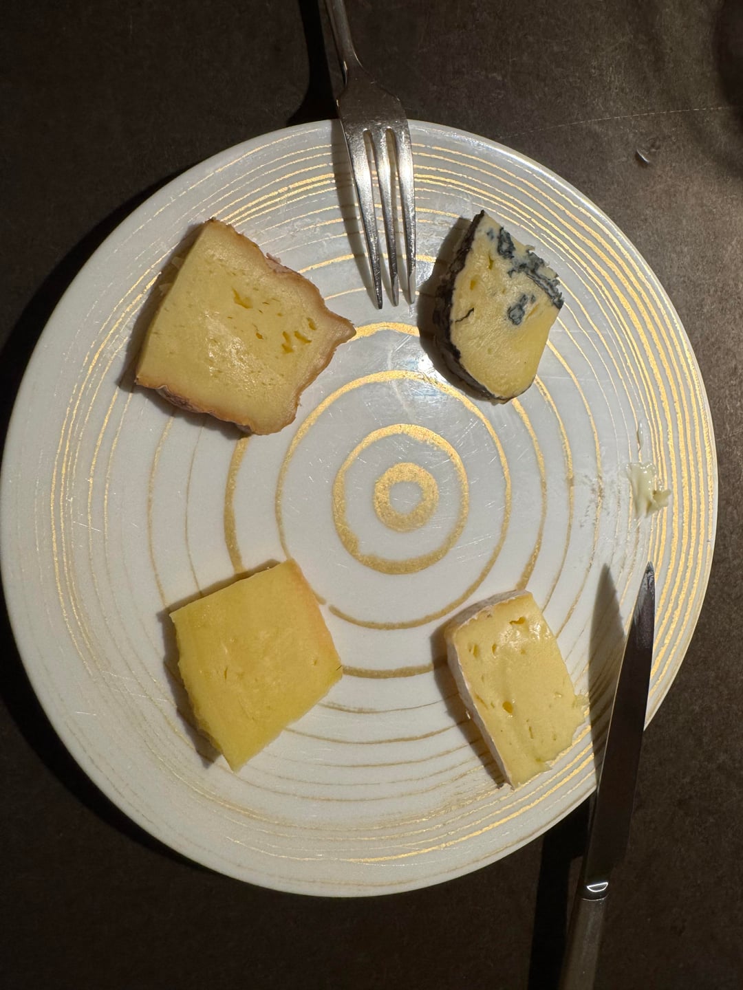 On my plate clockwise from top, a missing Yarg, Lord London – the pyramid Brie, a cider washed, Gubbeen, and barkham blue by village maid.