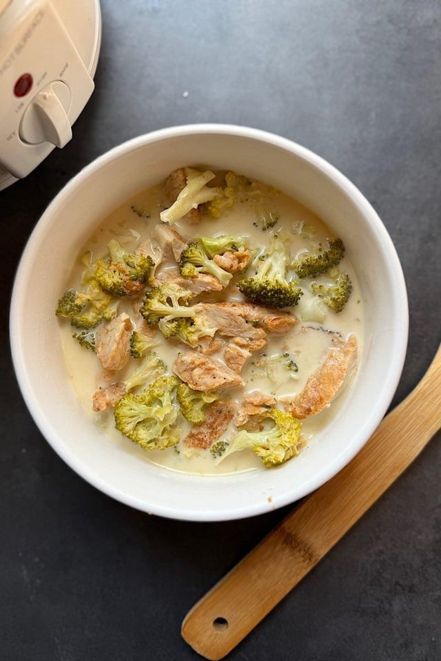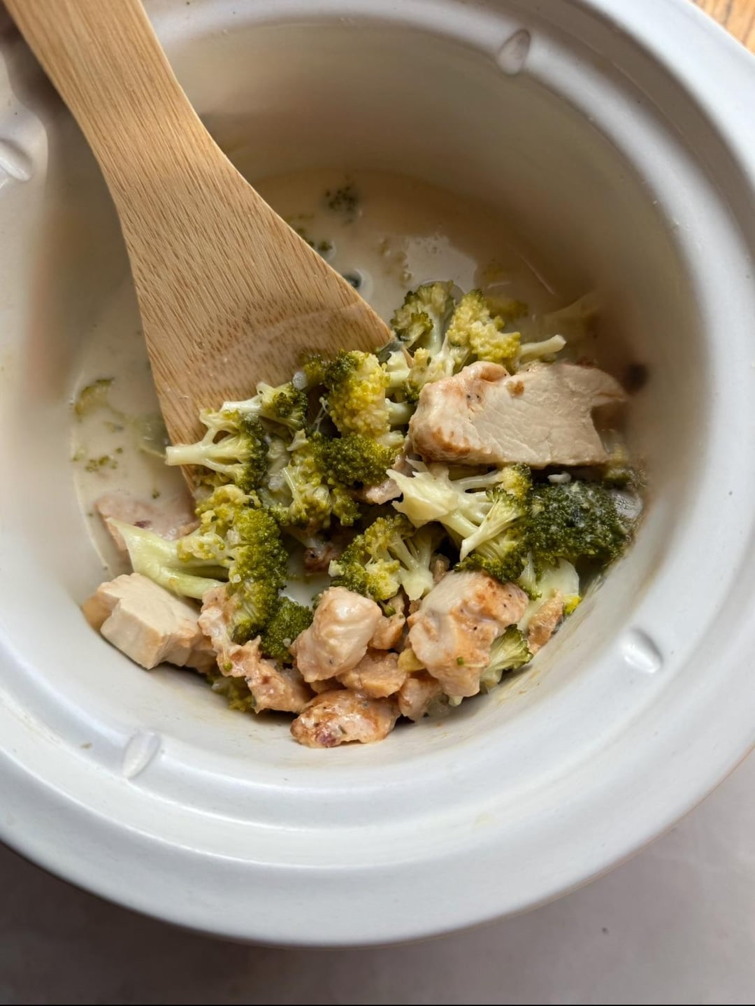 Cover and cook on LOW for 3–4 hours or HIGH for 1.5–2 hours, until broccoli is tender and the cheese is melted.