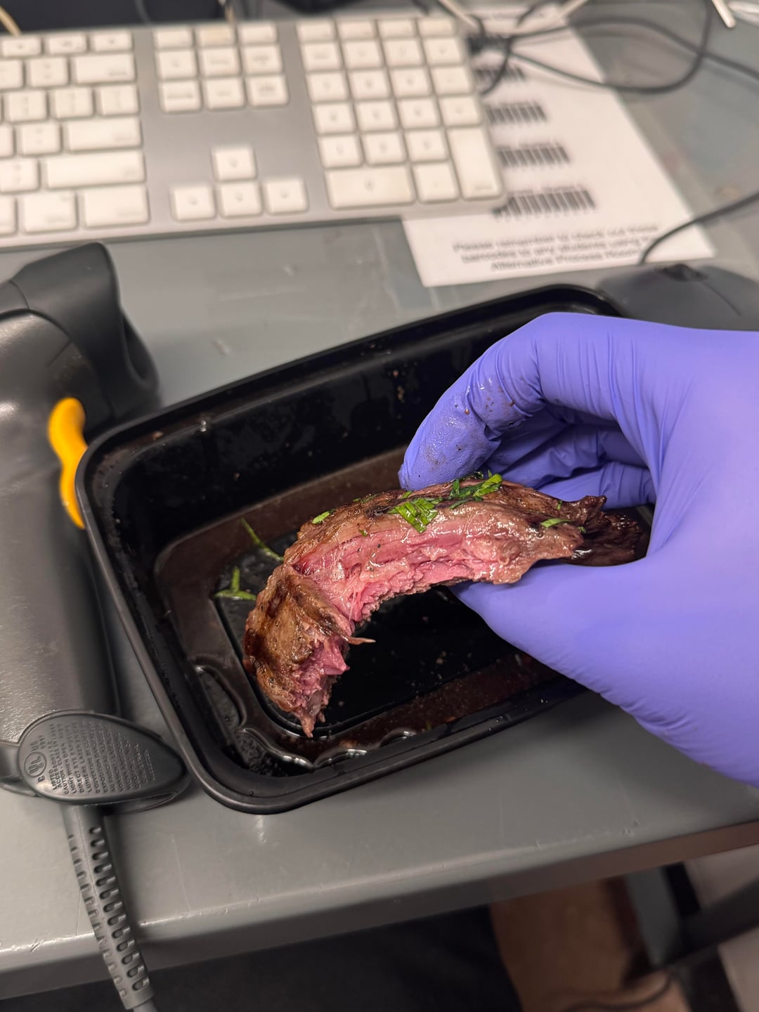 Honestly? I love the gloves! Steak looks pretty good too. From far away I thought it was ribs, but then I see the flop while you hold it- LOOKS tender and juicy!