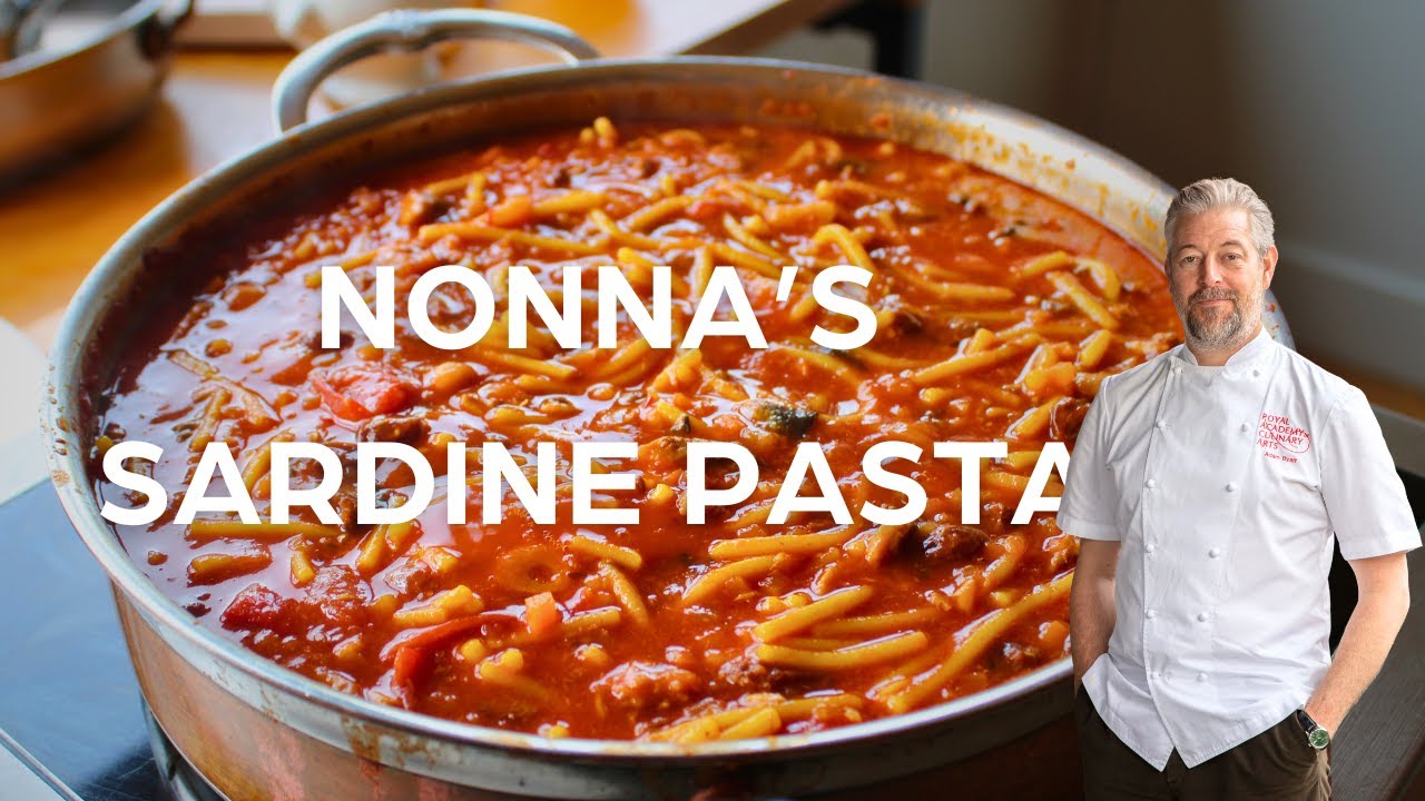 This soup is from a place called Hosteria del Vicolo, which is a beautiful little restaurant in a seaside town called Shaka in Sicily. I’ve been to Sicily a few times because of the work that I do with the Rockfort family. Um, and I go to this restaurant whenever I’m in Sicily. It’s a familyun business. the daughter’s cooking and the father’s on the floor and it’s just delightful whenever I go there. This is the dish that I have every time and it’s super lona. So this is a sardine soup and I loved it so much that I asked her for the recipe and this is the recipe. So a big shout out and I have put a link to her in this as well and they’re beautiful business. So ever you’re in Sicy you must visit. So, we start with these sardines and we want to create a nice crispiness on the skin. I think that’s really important. It’s going to help us to get that coloration in there as well and get a lovely flavor in there. Try not to burn the pan. You don’t have to cook these sardines all the way through, by the way, but try not to burn the pan. So that’s really important because we want to use this pan to make the soup all the way through. So a little bit of pan control right now is really important. And this restaurant, by the way, like I said, father’s on the floor, daughter’s in the kitchen um with her partner, and they just cook the most delicious food. They cook really elegant and quite fancy food, but they also have this on the menu that I think is kind of goes back to a family tradition for them and a family recipe. So I always have this when I’m there. I absolutely love it. Put a few more in there. And take your time doing this. Almost as it says in the recipe, just take your time as if you were going to serve these sardines as a lunch preparation. So, you really you’re caring for them. Don’t just throw them in. So, you can get a really nice color on the skin, nice crispiness going on. They’re delicious. And sardines, they’re in season. I’m filming this at the very beginning of August, but they’re so they’re super in season right now, sardines, and they’re they’re just coming into the English waters. So, we’ve got herrings and sardines coming in, which is why the tuna’s coming in as well. So, you’ve got that fantastic uh fatty bait fish coming through, but they are so delicious. I love the oil that’s produced. In fact, I had a dish at Browns yesterday. The team at Browns cooked me a dish of little breaded sardine fillets that were served with a tomato salad. So simple and olive oil was just utterly delicious. One of the nicest things I’ve eaten for a long time. In they go. We just keep working that through. But you’ll note even with that flour in there, I’m not burning the pan. We’re not letting it get too hot. We’re not getting the pan super hot. That’s really important. So I just use a little bit of seasoned flour to protect the fish when we go in. But equally there’s a little trick there. That flour is aiding to the thickening of the soup eventually. So it is playing another part as well as protecting the fish. Okay. Right. There’s those sardines. I’m just going to turn that pan off quickly and walk you through all the ingredients we need for this beautiful dish. As listed below, we’ve got this fantastic array of ingredients. Feels like I’m in Sicily. And Sicily has this influence from North Africa. And this is, I think, why I really love this dish. You really feel that spice and you feel the warmth and you feel that sort of, you know, this is Italian food but with a really interesting influence in it. We got cumin here, which goes into the pan in a second. We’ve got garlic, we’ve got diced onion, we’ve got diced fennel, we’ve got diced carrot, we’ve got raisins, we’ve got chickpeas, but we only want the the water, the aquafabra in there as well. We don’t want the actual chickpeas, but I’ll come on to that in a minute. We’ve got a lemon. We’ve got some plain water. We got some chopped up tomato skin on. We’ve got some pata, whatever you can get. Little saffron, not too much of that. And then just plain old spaghetti, just like that, which we’re going to use as well. So that’s it. That’s pretty much what there is. I had a little tray of flour here which I used to crisp up my sardines. They’re ready. So now we can get on and make our soup. In goes the spices. Delicious cumin goes in there. Now in goes the onion. And like anything like this, as soon as it goes in the diced onion, we’re going to start seasoning now to season the whole dish. That’s really important. So, it’s nice seasoning in there. Now, let that all cook down nicely. And that salt, as always, is going to bring out the moisture and just allow that onion to sweat rather than fry. We’re not looking for that. We’re looking for all the water to come out and for the moisture to come out and it be utterly delicious. There we go. In goes the fennel nicely. Very important they’re diced absolutely perfect. Just like that as well. Not really. I didn’t dice them. Someone diced them for me. Lucky me. But uh diced they don’t have to be. It’s a it’s a minestronei. It’s a simple soup. It’s for this is a family nona style soup. Needs to be served in the garden with a big chunk of chibata bread and olive oil and it’s just wholesome and life affirming. So don’t get too caught up in it. Just just lean into it. Nice carrot in there. That’s going to bring sweetness and texture as well. Get that in. Continue. Keep that heat up. You need to hear that frying all the time. It’s not difficult. In it goes. Lovely. I would see now I see that that if you come in Sam that you’ll see all that olive oil has been absorbed by the vegetables there. Right. I’m going to put more olive oil. Now I want to make sure there’s always enough olive oil in this to keep it going. It’s the salt that’s done that that’s really s