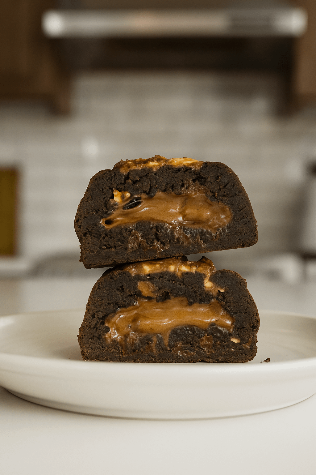 Chocolate Cookie stuffed with chocolate caramel core and topped with Snickers by fatandweirdcookieco Dining and Cooking