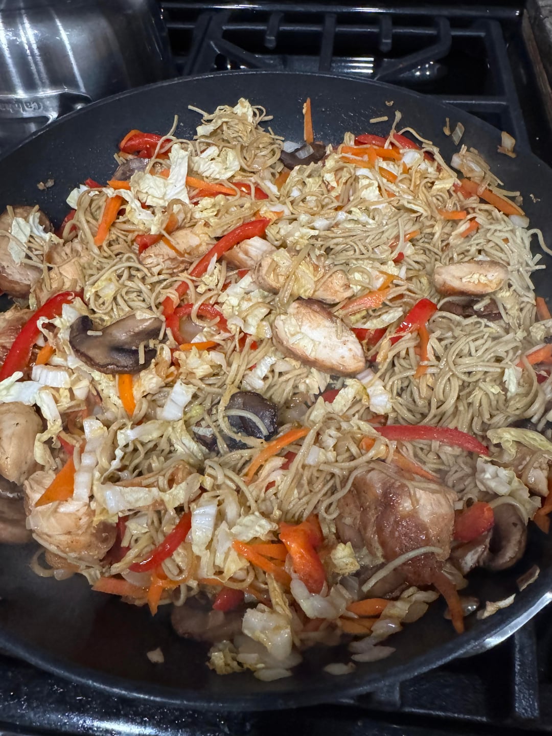 At night I was feeling something warm, so I used some of the same ingredients subbed the tofu for chicken and made yakisoba.