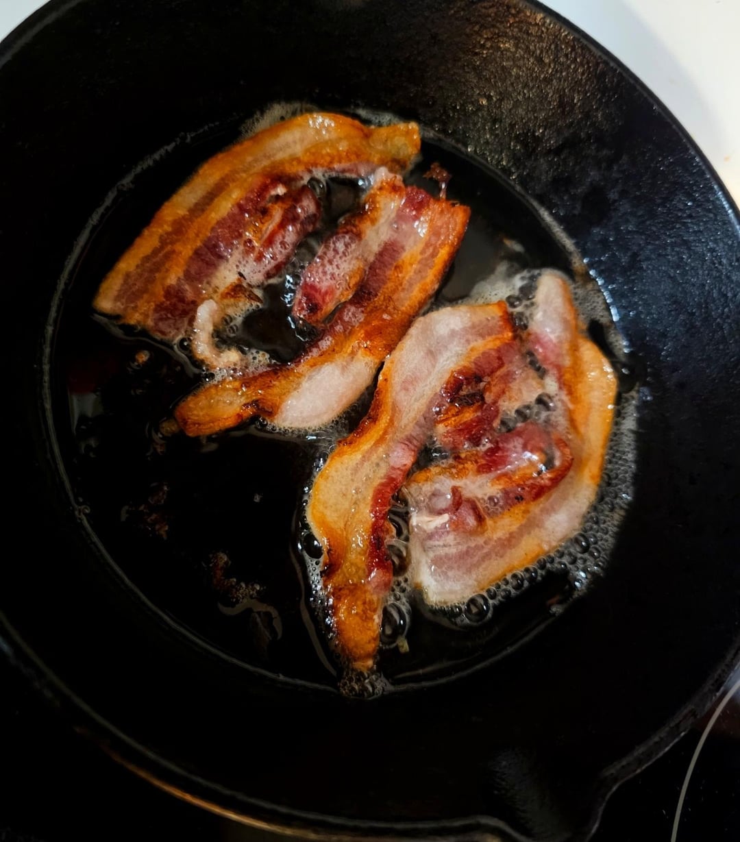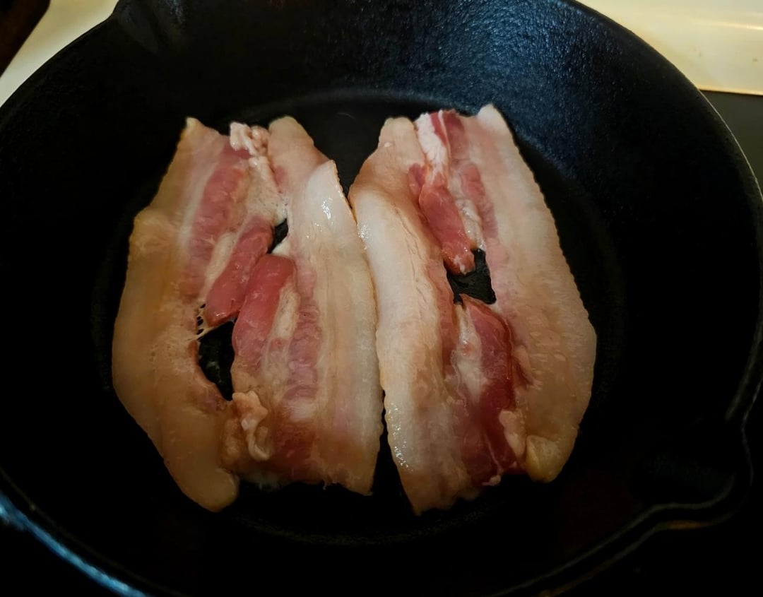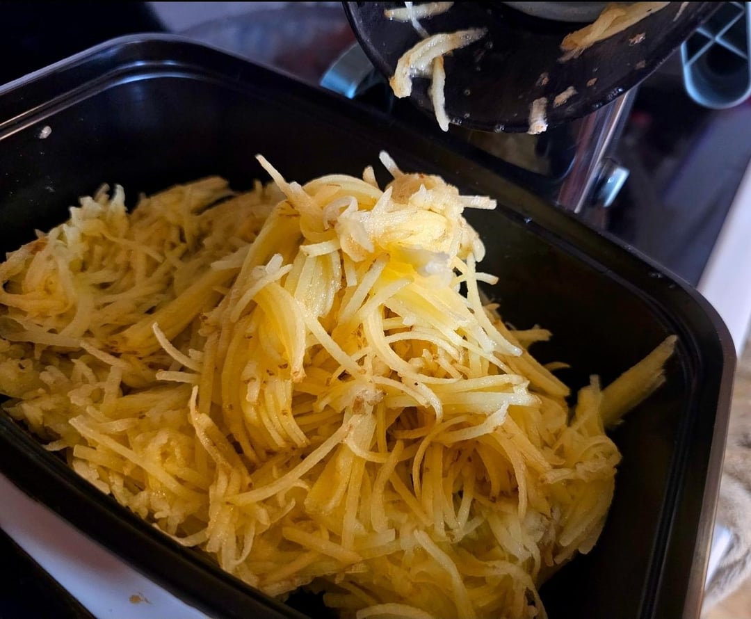 After finishing the cheese do a couple potatoes and strain them through a cheese cloth. They don’t have to be completely dry but you don’t want them dripping when you give them a squeeze through the cloth. Letting them sit while the bacon cooks also helps, if they start to oxidize/turn color just ignore it, they’ll be fine after cooking. Don’t be afraid to over season these, I used salt, pepper, and garlic, and still needed some more after cooking, usually I go light on the salt if I’m cooking stuff in bacon fat but these potatoes need some extra 😂