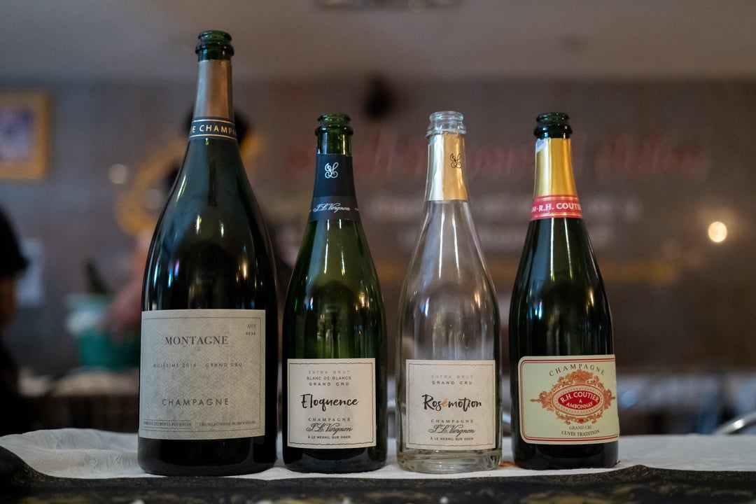 Hi! In August we hosted a “Champagne and Chicken” dinner in Bangkok, Thailand at one of the most famous Michelin Guide fried chicken spots in the city for 40 guests. We started Uncorked Wine Club in Bangkok to host these unconventional wine events. We closed out the restaurant for a night and set up the tables for an intimate but chaotic vibe. We collaborated with a top champagne importer from Thailand and served four grower champagnes which were all delicious. The Coutier was very toasty and full while the Eloquence was bright and zippy. The Montagne was definitely the most elegant and balanced style.