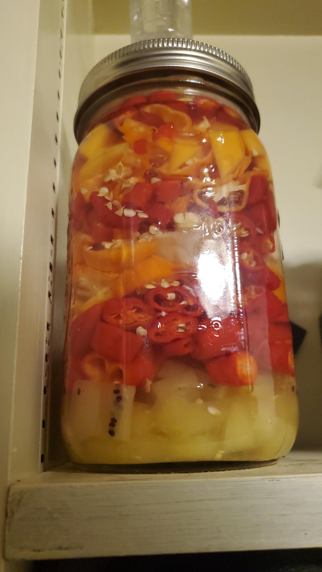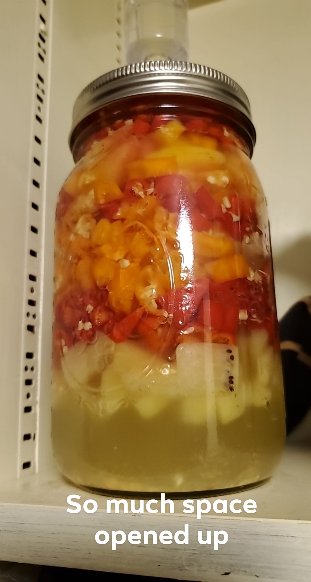 No seasonings just fruit and peppers. Seeing the space open up after a week is pretty neat.