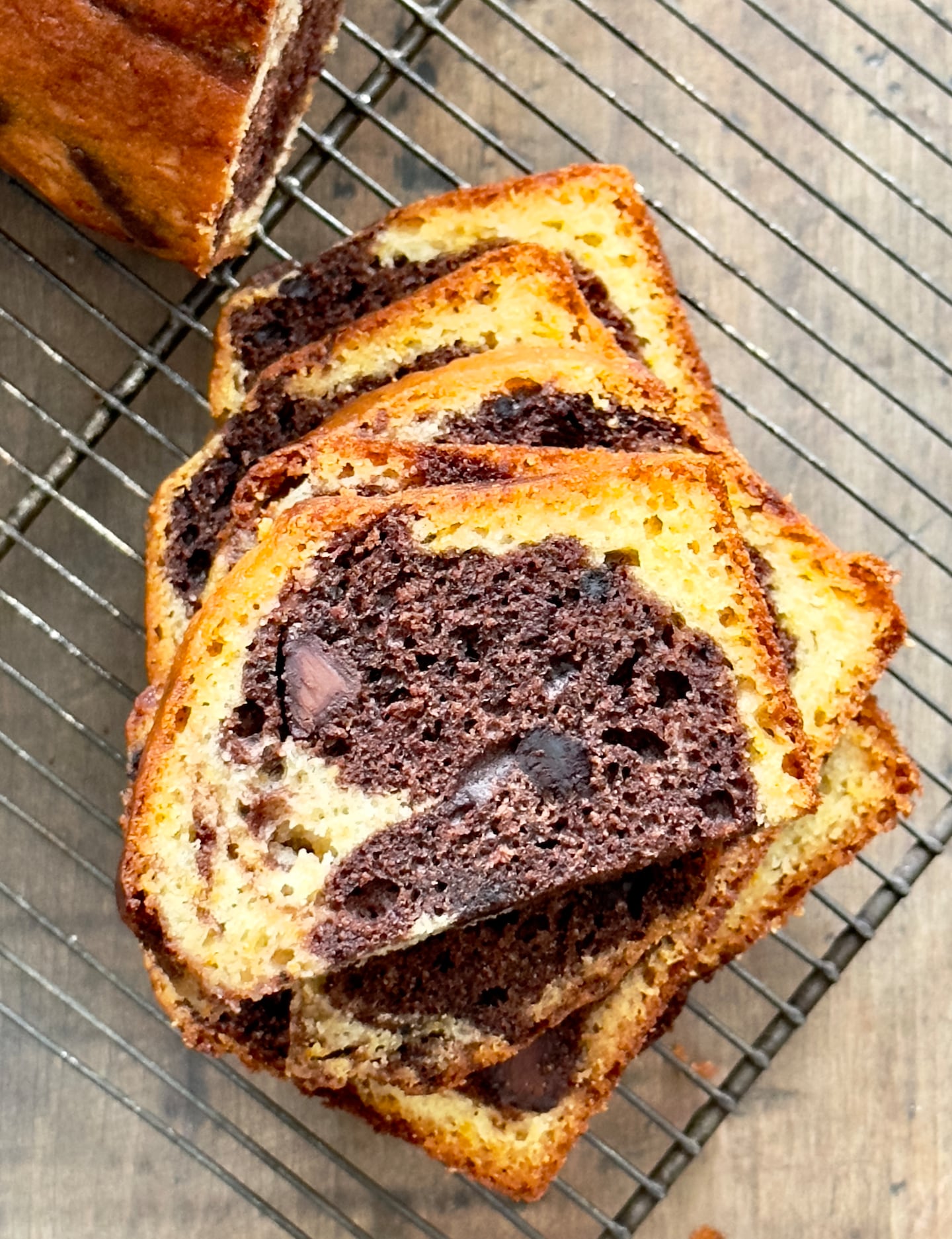 1½cups flour2teaspoons baking powder1cup granulated sugar Pinch of fine sea salt½cup plain whole-milk yogurt3 eggs, at room temperature½cup vegetable oil¼cup unsweetened cocoa powder2tablespoons dark chocolate chips1teaspoon vanilla extract Grated rind of 1 orange