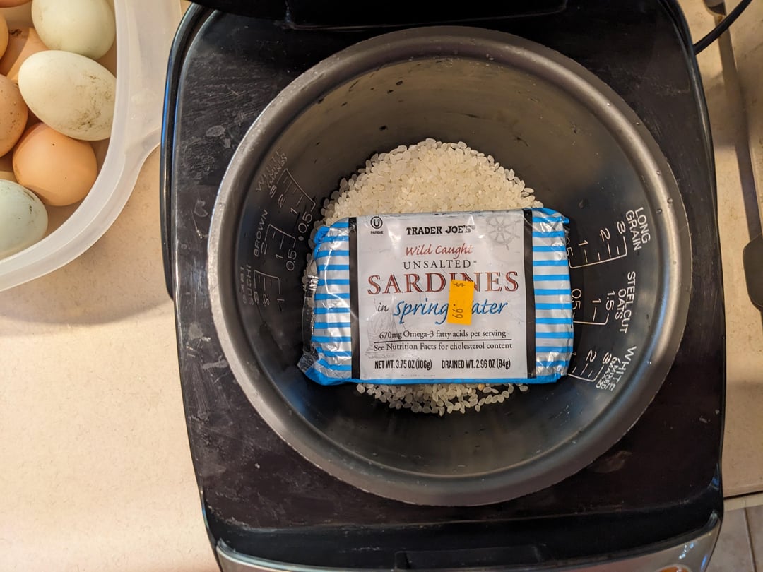 That looks like a Zojirushi cooker? I have one and love it regardless of the steep price. The rice I buy is hella expensive too and I like it 100x than any sardine I’ve ever tried. If I make your dish and taint my rice cooker I’d be bummed af.