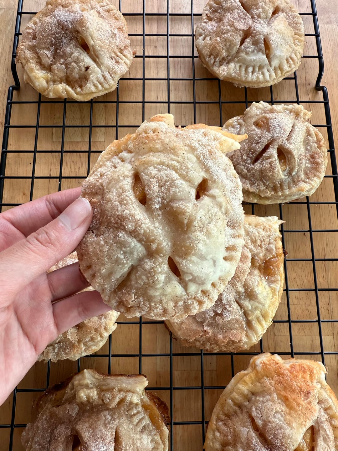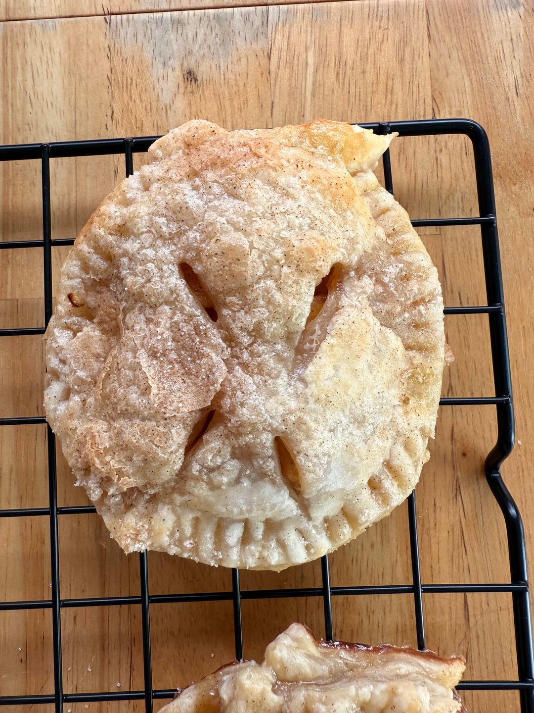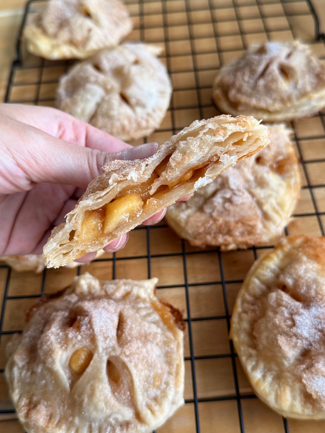 these apple hand pies are so cuteeee!! it is filled with a delicious apple pie filling and coated in cinnamon sugar!:))