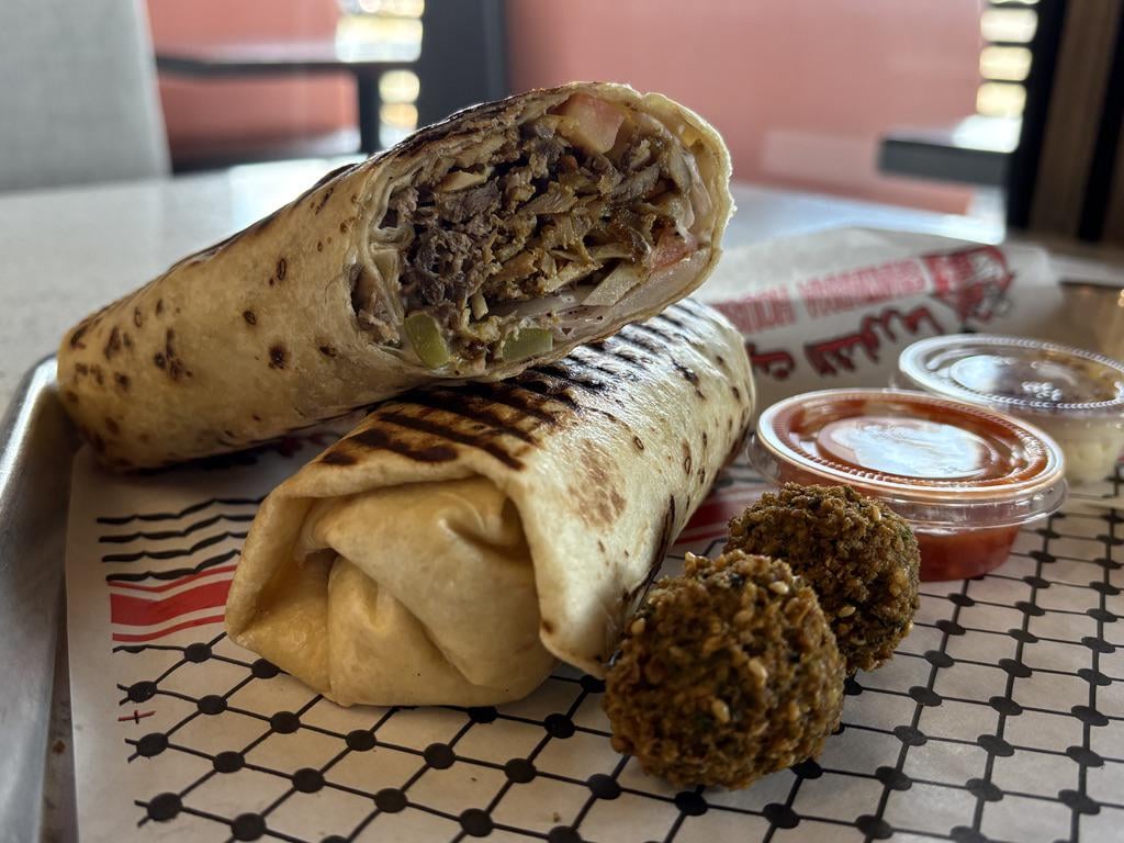 Fillings: Sababa offers falafel, chicken, steak, or vegetables and you can mix and match at different price points. You can customize the sauces and vegetables inside when you order.