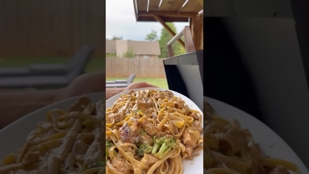 Let’s make chicken Alfredo tonight. Use that chicken rub on the chicken. It’s about a pound of chicken tenders. Get some good color on our chicken. Almost done all the way. We’re going to pull it a half a stick of butter, broccoli. Chop that chicken. We got a package of fetuccini noodles cooked and drained. Going to put a touch of oil on top of it. Keep out of butter. Is any whipping cream? That probably grated Parmesan cheese. [Music] Chicken Alfredo right off the Blackstone. Let’s go eat. Oh yeah. Oh yeah. All again.