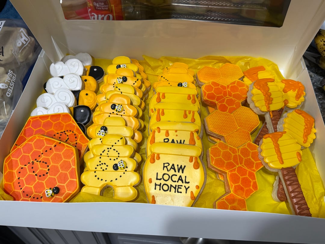 Customer asked for the cookies not to be individually wrapped, but I can’t wait until she gets these! by Unique-Point-8818 4 Comments kswishy 1 month ago Super cute! Are the little bee’s icing transfers? Love_And_Butter 1 month ago Super cute! The colors are so vibrant! Savory_Snackmix 1 month ago These look great! msladydi8 1 month ago So adorable! The beehives are my favorite