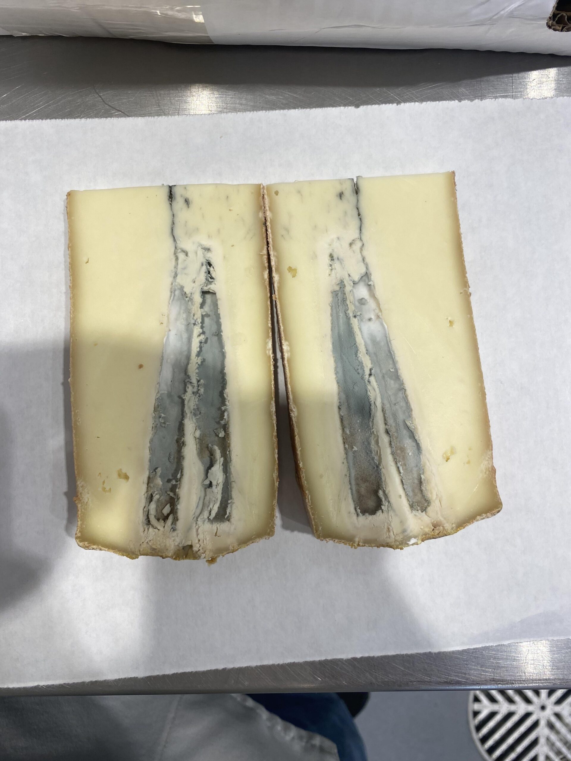 cut into a wheel of morbier at work the other day, my coworkers were not as nearly as excited as I was to find this little surprise ( getting a wheel that was graded ) coworkers were even less excited when I explained what happened to the cheese :p lol but I figured I’d share it here