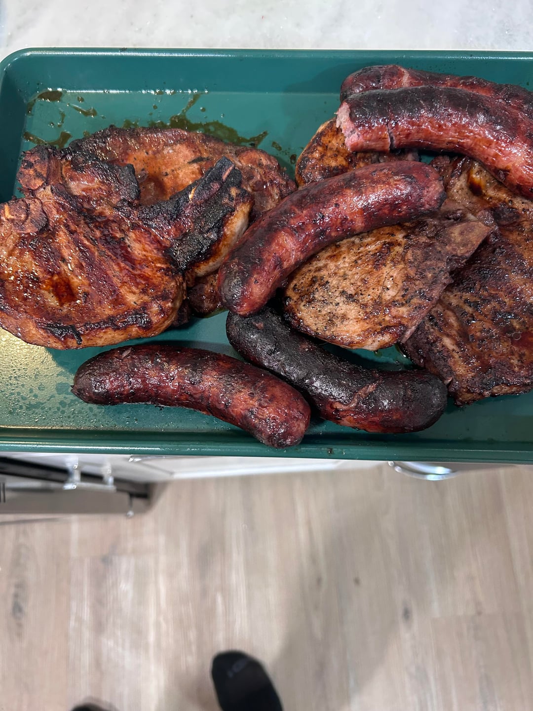 Two different meals. Just cooked some new m York strips and lobster tails tonight. The other night we made pork chops marinated with dales and seasoned like a steak and we cooked brats since the grill was lit. Everything was cooked perfectly