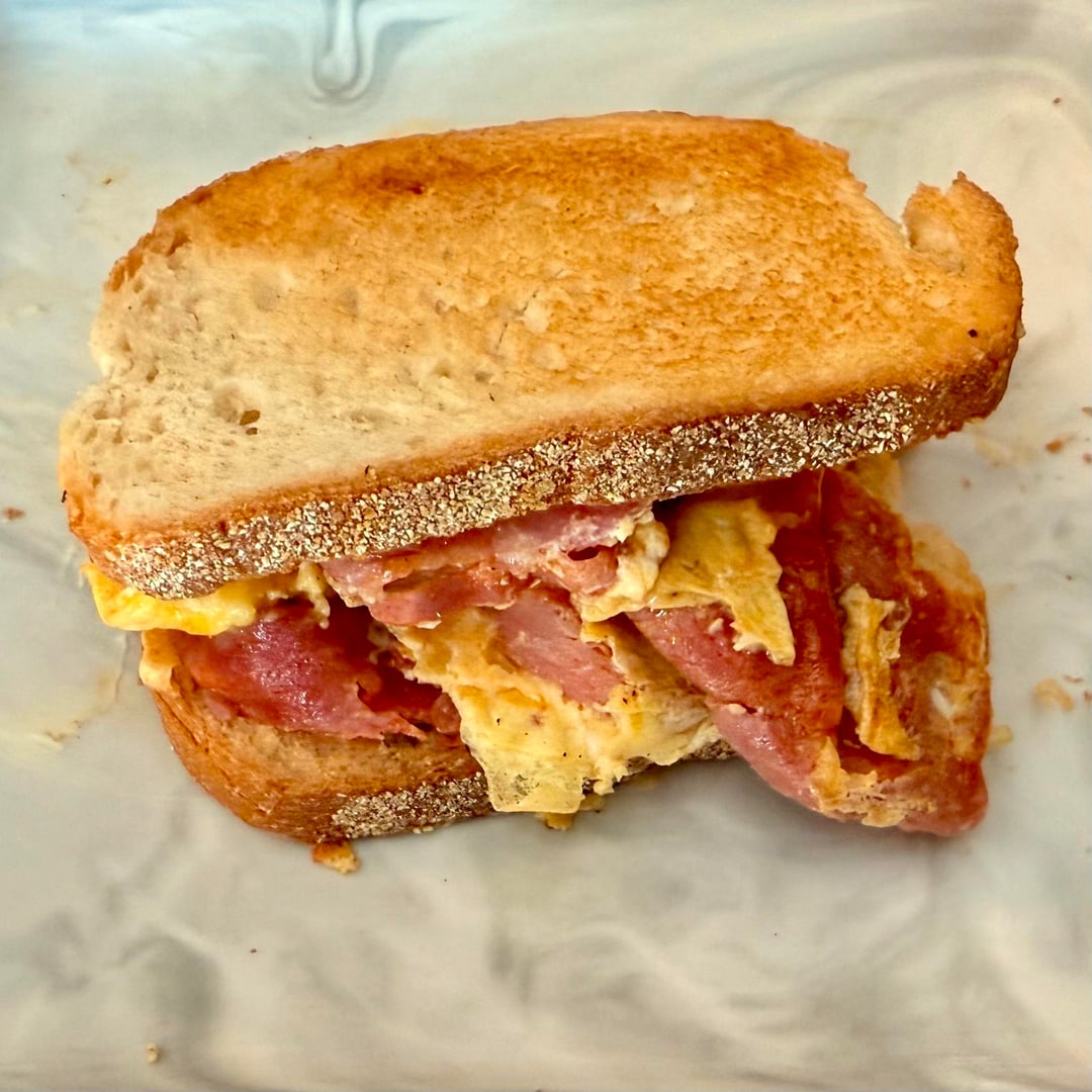 Today’s breakfast was hot capicola and eggs on Italian bread toast. The meat was spicy enough so no hot sauce was needed and if I had provolone cheese I would have added a slice. (I called the meat capicola because I’m not Italian I can’t call it Gabagool 😊)