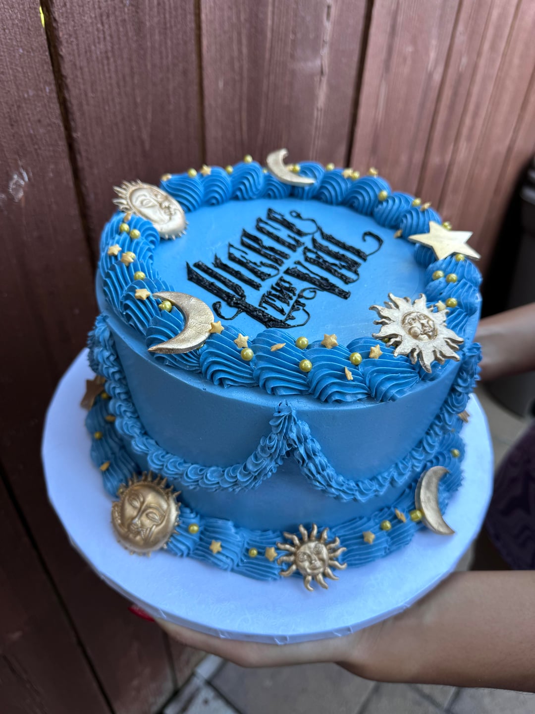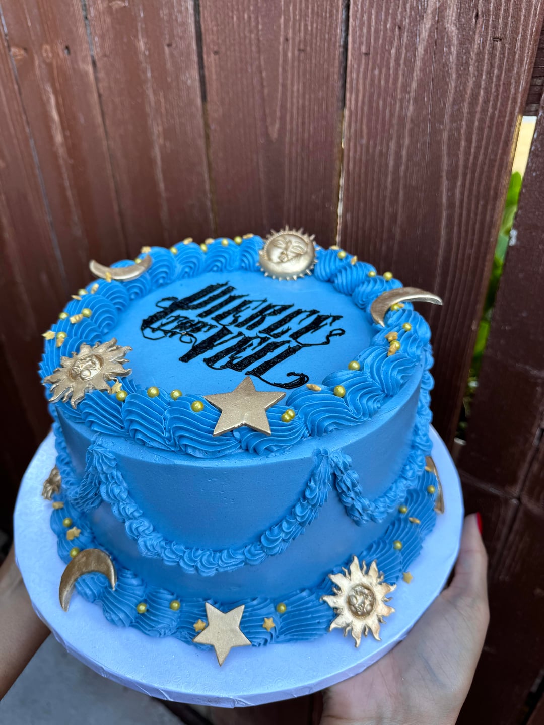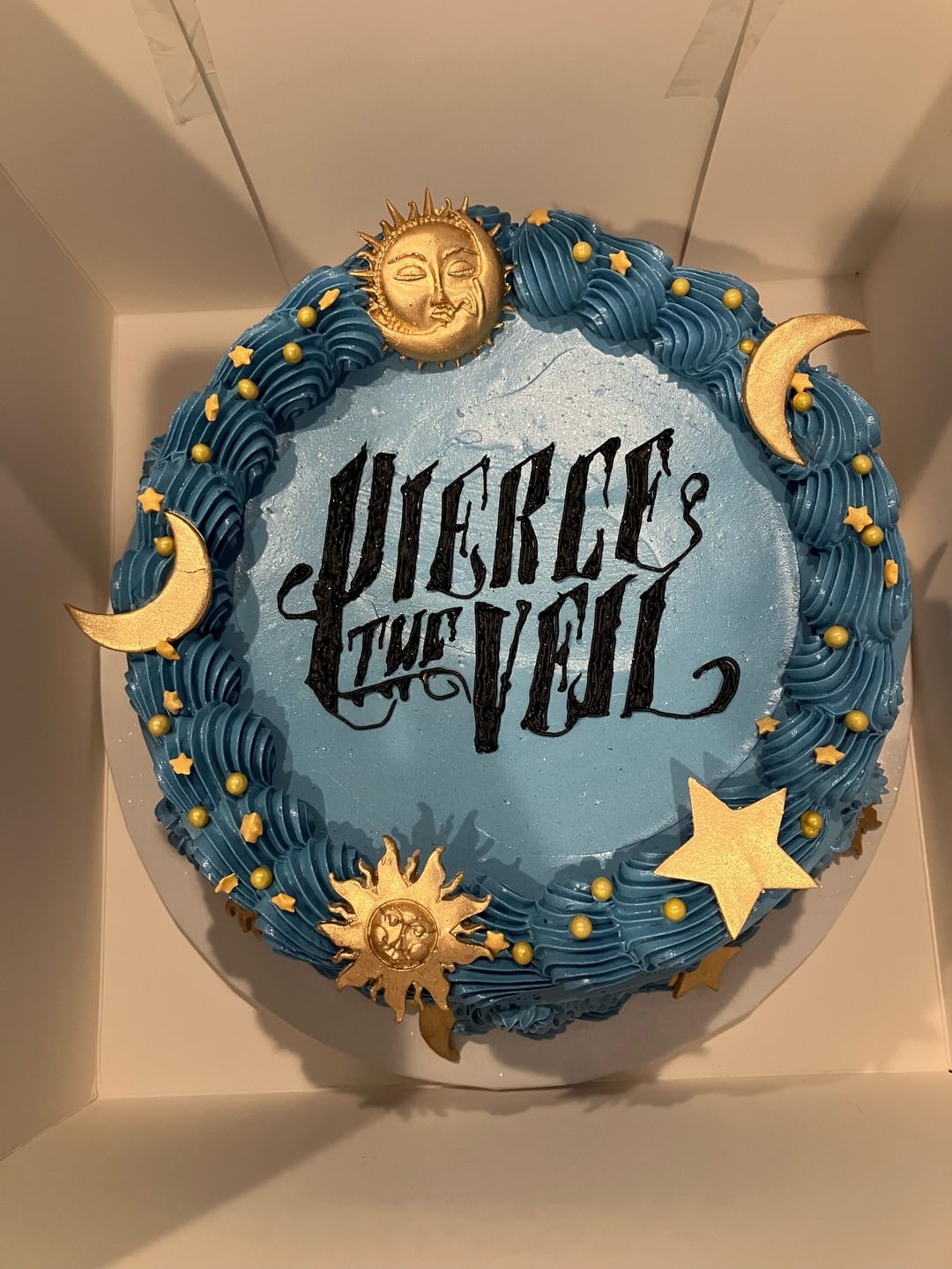 A client ordered a Pierce The Veil/Celestial Cake! It came out so beautiful! 🙂 by Crystal_A5 5 Comments pathofuncertainty 3 weeks ago I love the shade of blue! Stunning! noexqses 3 weeks ago My 14 year old self would’ve loved this NewbieMaleStr8isBack 3 weeks ago BeautifulDid you do the lettering with the aid of a stencil? Spacelady1953 3 weeks ago Beautiful color metallady84 3 weeks ago I’m a 41 celestial lover and a cottage baker, with a 16 year old who got me loving Pierce the Veil. This is AWESOME! Beautifully done, my friend!