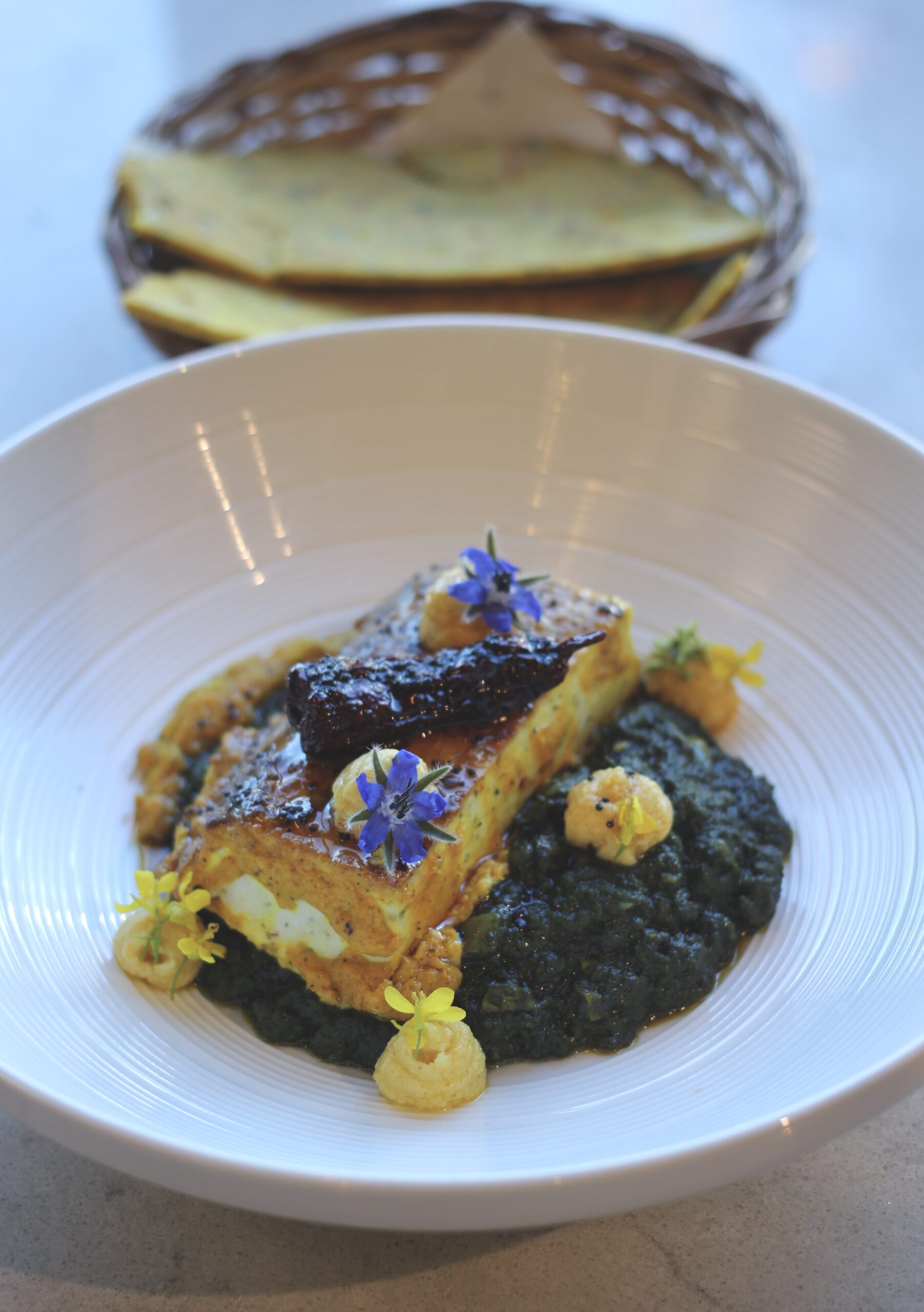 Last week I slipped into the new Kavita space for a look around — to meet the team, take in the room, and get an early taste of what’s to come. Chef Tushar shared a few dishes from the upcoming menu: compressed Chicken Bhujing, served beneath a playful blanket of crisp flattened rice; bright Malvani Prawn Pulao lifted by kokum and koshimbir; and a quietly brilliant Paneer Saag made with house-made paneer (a nod to Tesfa Farms buffalo milk and Chef de Cuisine Narendra Panwar) that swaps traditional spinach for locally foraged nettles – the latter being a small switch that nevertheless says a lot about the kitchen’s intent. All three dishes were precise, balanced and deeply satisfying, and landed with confidence. They spoke less of experimentation and more of a chef sure of his footing, and ready to build something lasting.