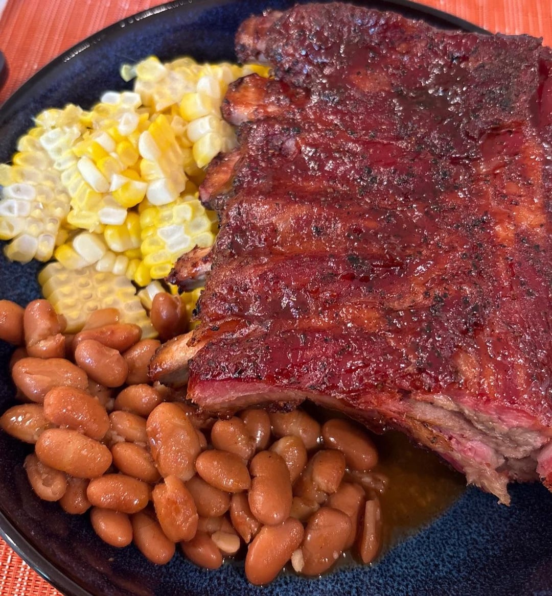 I used Traeger Anything rub and finished with sweet baby rays sweet and spicy.