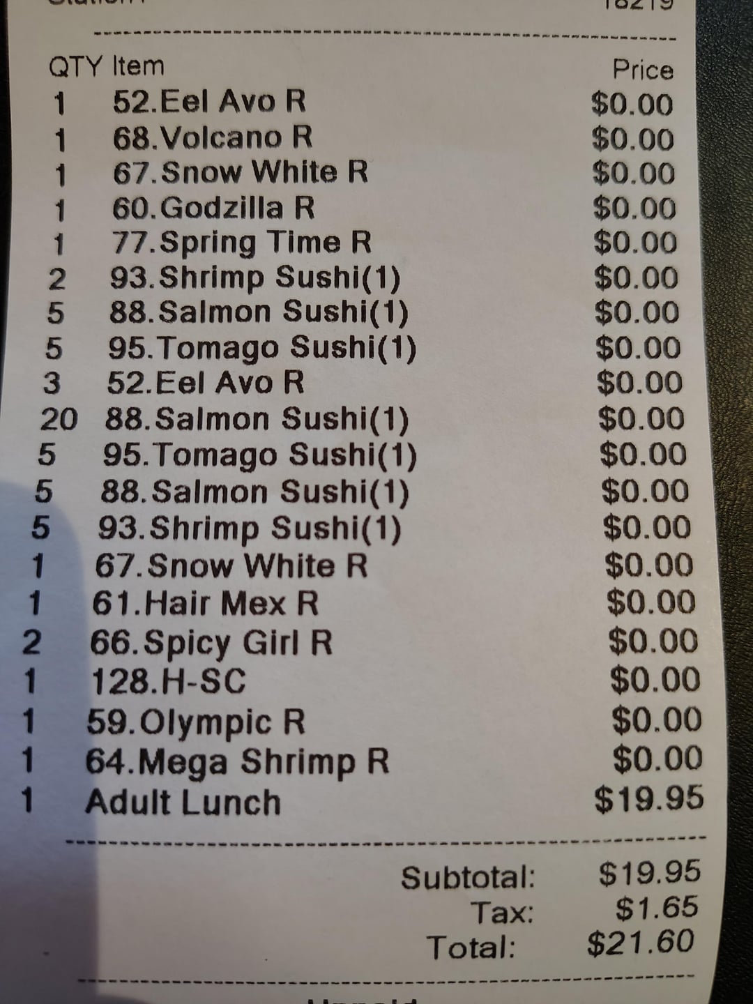 This has to be losing money for the business… How many people were sharing the meal (how many people paid the $20)?