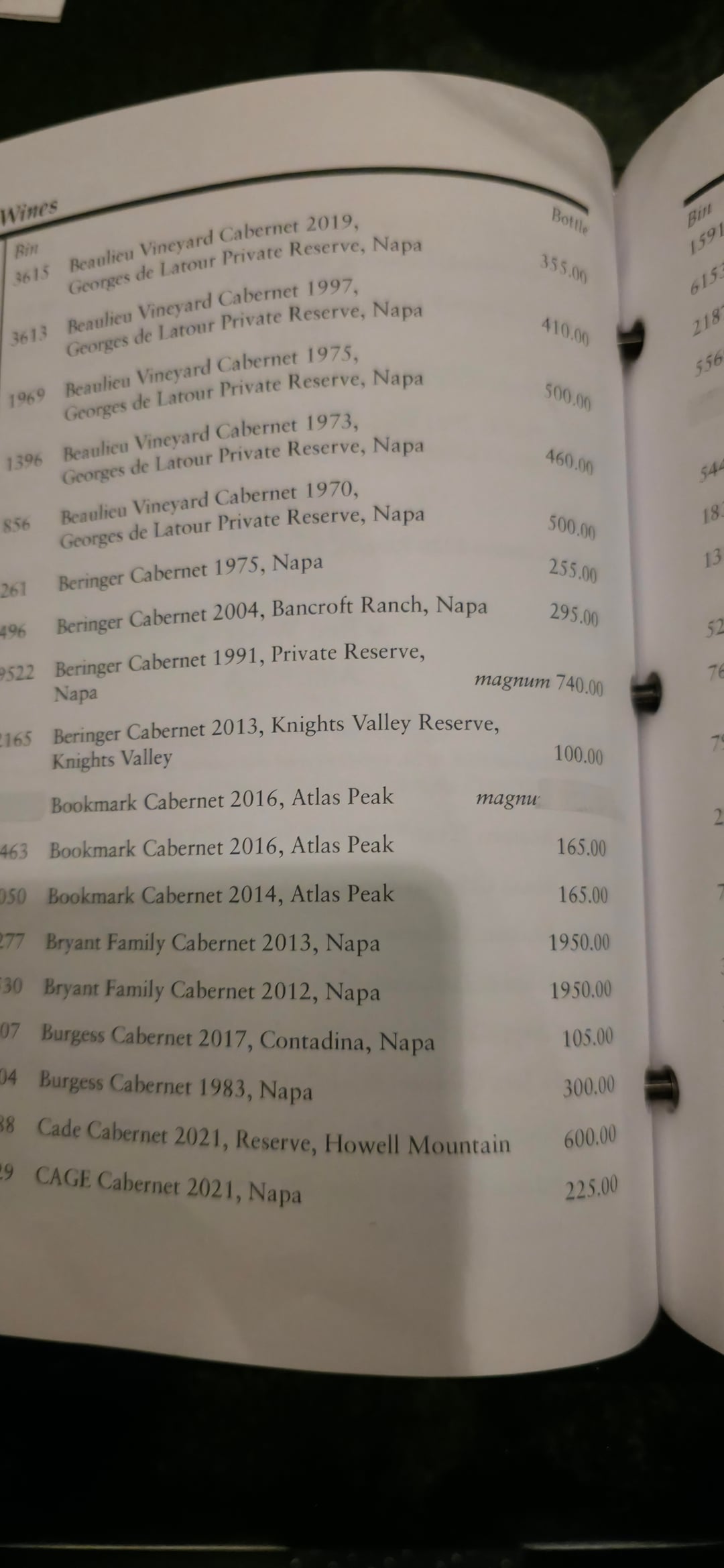 They had an 1865 Lafite until I drank it. 🙂 Absolutely shocking the number of bottles of Caymus they sell in here. You are at a restaurant with the best list in the country and you order Caymus?