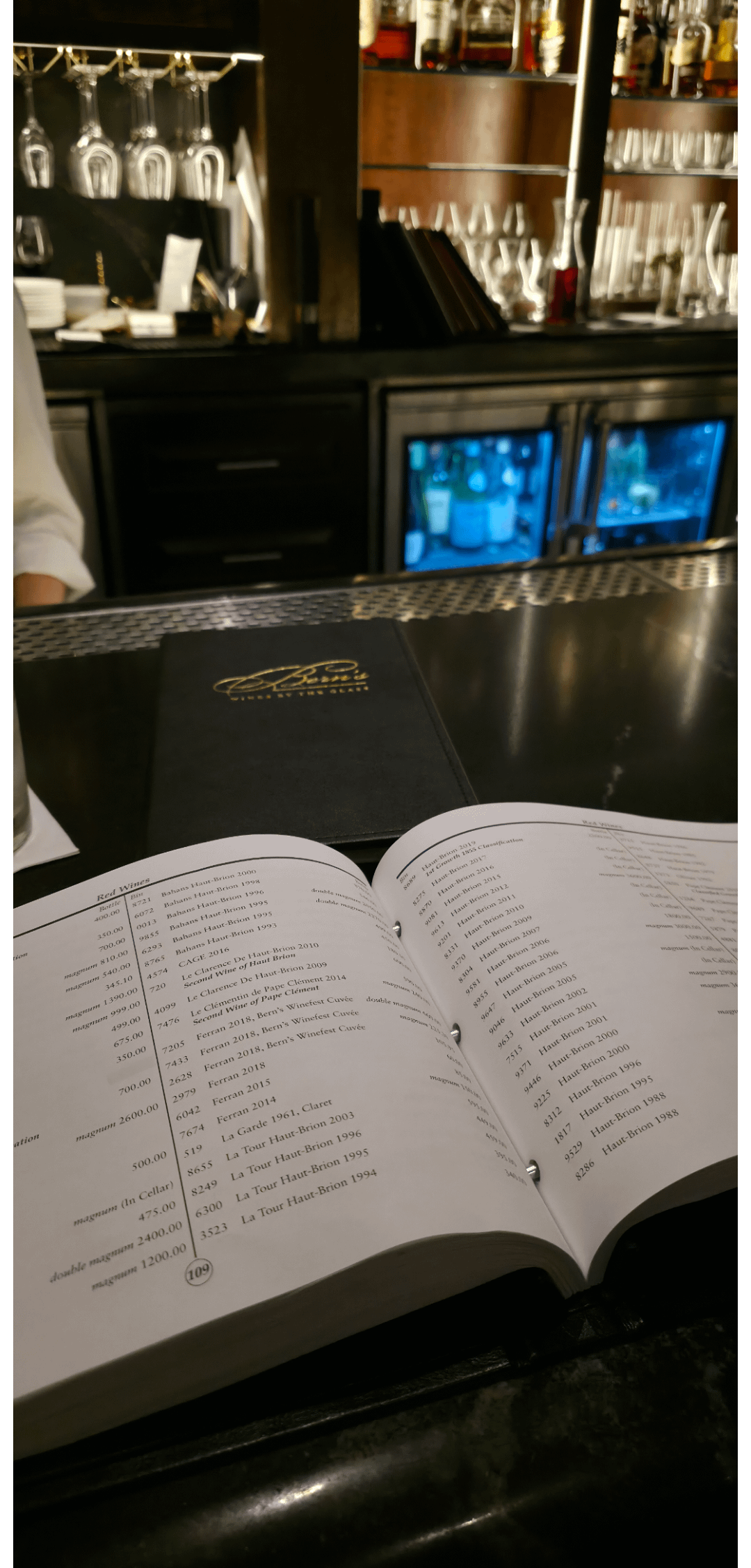 They also have wines that go back to the 1800s including the 1898 Lafite on the menu I took a photo of and apparently a Larose 1845 for a mere $49K per bottle!