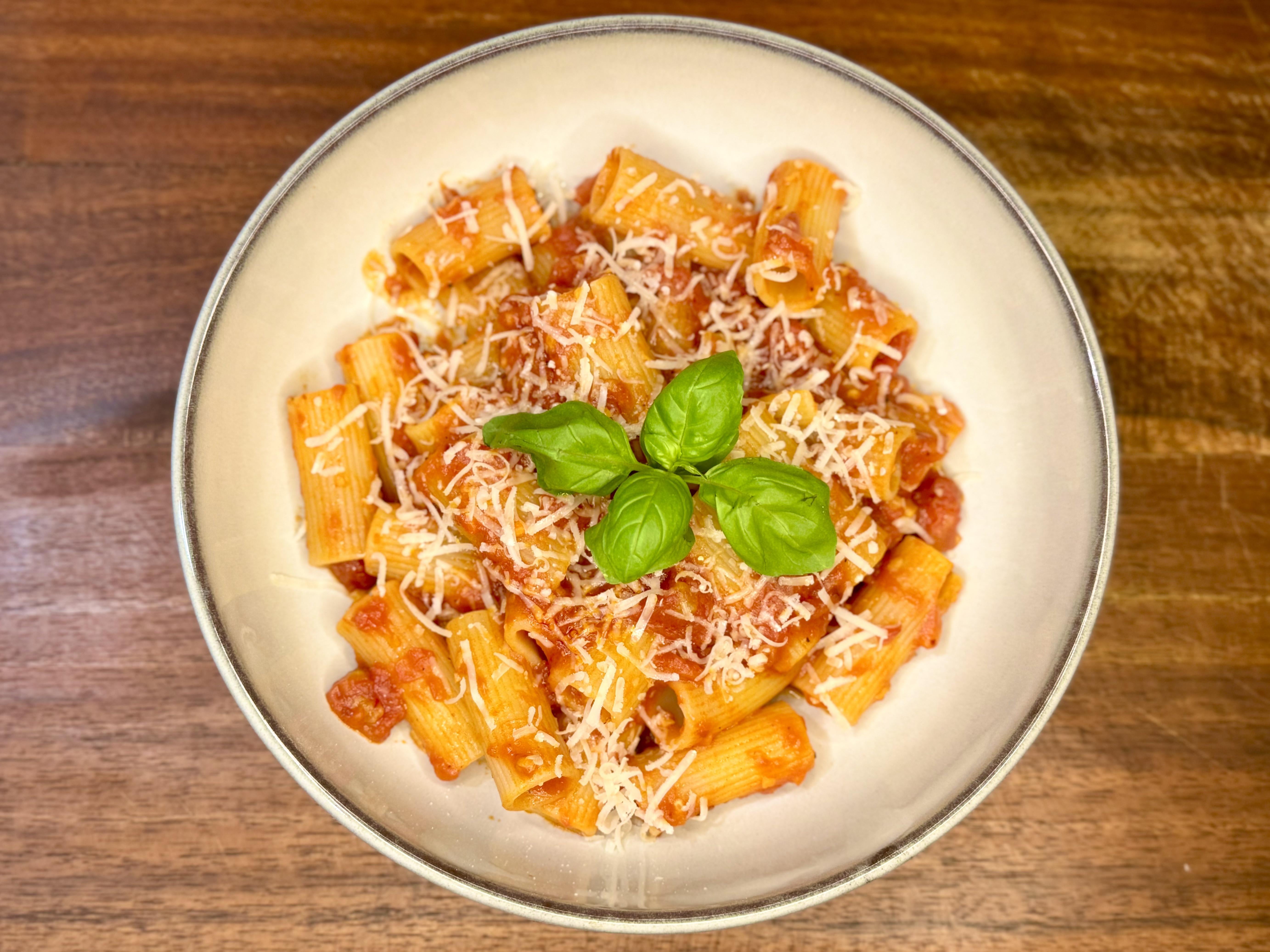 Front_Statistician14 2 months ago Looks amazing The sauce looks perfectly balanced and the pasta cooked just right. That sprinkle of cheese and basil on top really finishes it off, could easily be on a restaurant menu honestly